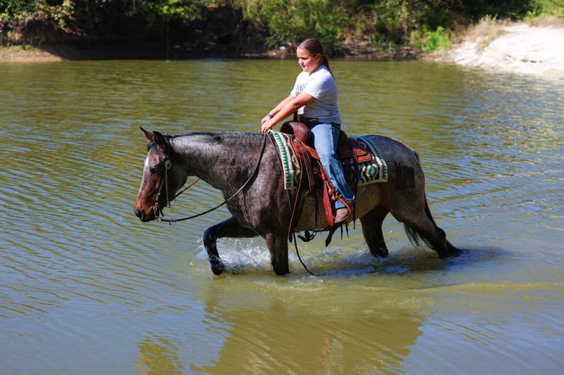 ⚜️𝐓𝐇𝐄 𝐅𝐀𝐋𝐋 𝐇𝐄𝐑𝐈𝐓𝐀𝐆𝐄 𝐂𝐋𝐀𝐒𝐒𝐈𝐂⚜️ Happening now thru MONDAY | NOVEMBER 3rd - Available EXCLUSIVELY on HorseBid's website! For more details and to register visit: www.Horsebid.com CONSIGNOR CONTACT: MM Ranch 469-595-6289 LOCATION: Forney Tx BREED: Quarter Horse REGISTERED: No COLOR: Bay Roan HEIGHT: 14.2 AGE: 5 GENDER: Mare 🌟Unicorn Alert!!🌟 This is Katie, A true one of a kind. She is bay roan or what I call a frosted bay roan color. She is an absolutely GLAMOROUS little mare standing at the perfect size of 14.2 hands tall. A once in a lifetime find and at just 5 yrs old she has her whole life in front of her. She has been vet checked to be 5 yrs old. She was born and raised on the same place. Imprinted and handled since birth. She has the most loving and kind disposition. She is naturally gentle and kind. Doesn’t have a mean bone in her body. Absolutely loves attention from any and everyone. Especially kids!!! Not even an ounce of spookiness. No snootiness or watchiness. Absolutely no bad habits. She is the ultimate sweetheart. Katie has a solid foundation in her training. Since she was 2 yrs old she has been used on a big working ranch. She has all the ability and cow sense. She can go any direction. So talented and smart. And so easy to ride. ✨This girl could stand in place and lope. She is so refined and elegant. Her trot and lope is Effortless for her!! So smooth and easy. You barely have to squeeze to get her to step off in it. She is Fancy!!! Katie has all the bells and whistles as they say!!! She is ready to go on and do big things. She has been rode both in and out of the arena. Rode out on the ranch and checked cattle and been on lots of trail rides. Even had a lot roping done on her and true ranch work done on her. You do not have to be a cowboy to ride her tho. 💥 Cause the best thing about her is she is absolutely safe and gentle for anyone. I have never seen this mare do anything wrong. No bad habits. Absolutely no quirks or vices about her. ⭐️ She stands perfect to be mounted. Stands perfect for baths. She will meet you at the gate every time. And comes right up to you and puts her head in the halter. She loves going to work. She wants to please and wants to learn. Absolutely NO warming her up. Just jump on her and go. She is safe for anyone to ride!!! She really has the capability to do anything you want to do on her. You will get noticed riding her. She is pretty. 🍒 Katie is guaranteed 100% sound in every way. 🌎 We can and will help arrange affordable shipping if needed. She is up to date on all shots and worming. She just had her feet done. She is ready to go to her new home. Call with anymore questions you may have about her.