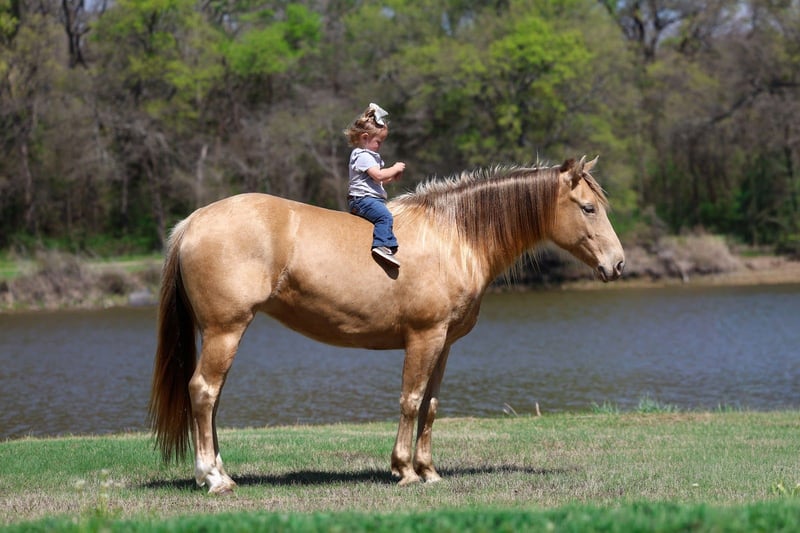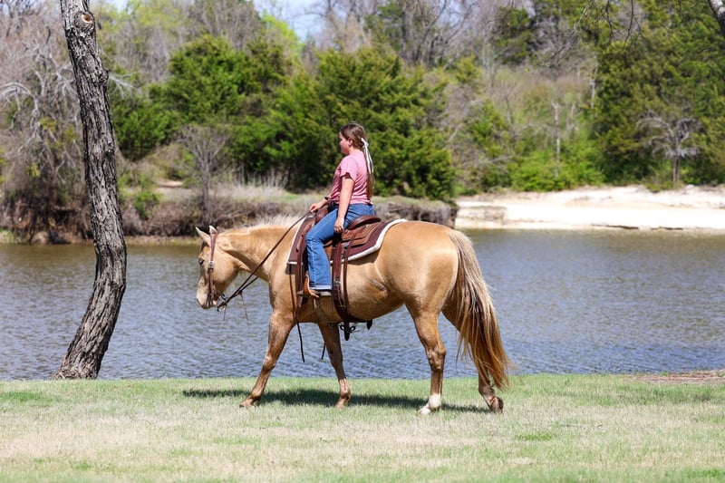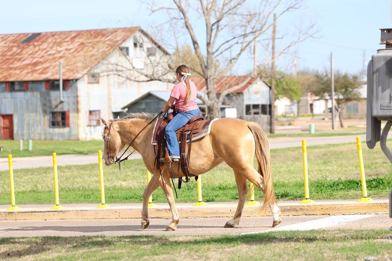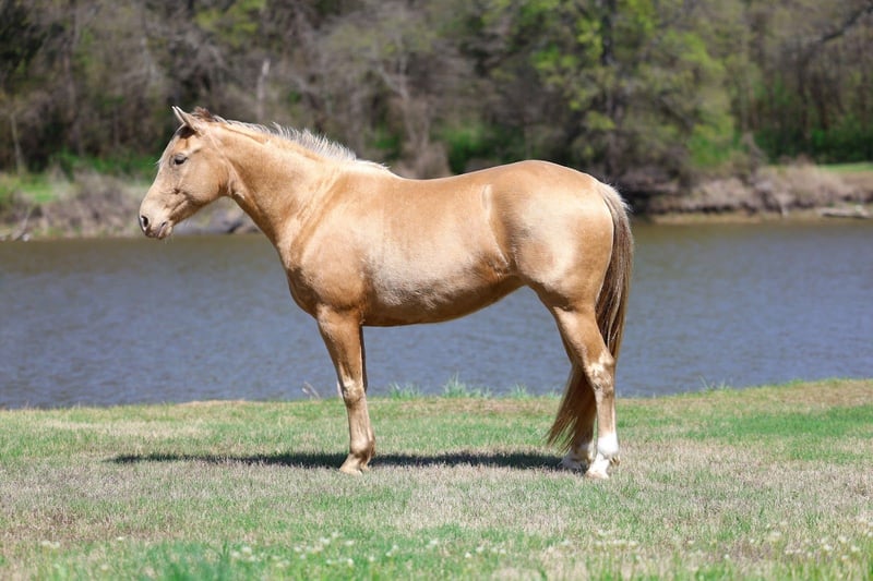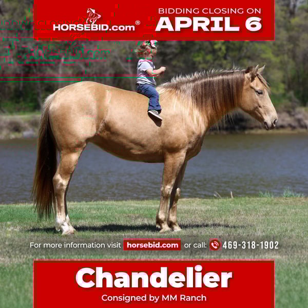 🌟𝑨𝒑𝒓𝒊𝒍 𝐀𝐋𝐋 𝐒𝐓𝐀𝐑 𝐋𝐈𝐍𝐄𝐔𝐏🌟 Happening now thru MONDAY | APRIL 6th - Available EXCLUSIVELY on HorseBid's website! For more details and to register visit: www.Horsebid.com CONSIGNOR CONTACT: MM Ranch 469-318-1902 LOCATION: Forney, TX BREED: Quarter Horse REGISTERED: No COLOR: Champagne HEIGHT: 15 AGE: 6 GENDER: Mare Wow!! 🤩 Look at this one. Chandelier is a very unique champagne colored mare. She is a big beautiful girl standing 15 hands tall that is just 6 yrs old. Yes vet confirmed to be 6 yrs old. She is an excellent all around one for the whole family to ride and enjoy. •This girl is as classy and stunning as they make them. Plus she is a bombproof all around type anyone can ride. •Has all the fancy bells and whistles. Really can slide to stop and spin around if you ask her to. •She has an old soul, been-there-done-that personality that makes her the go-to for a quiet enjoyable ride. She is both well trained and well behaved in any scenario or discipline. She is quiet and soft to ride in or out of the arena, alone or in a group. Not at all skittish, jumpy or reactive yet sure-footed and nimble through coarse uneven terrain. She has a ground covering walk, a silky smooth jog, and a dreamy lope all on a loose rein or even no bridle at all! Not forward or pushy making her a terrific step up for a novice rider looking for a confidence builder or babysitter to show them the ropes! Very forgiving and patient both on the ground and under saddle. She rides English as well. She is ready to go show with endless potential to progress. She has enough of a handle to participate in local fun shows or 4H and also pull her weight around the ranch doing chores. Chandelier is no stranger to a hard days work and is a blast to use! Side passes to open and close gates, rides anywhere in the group, drug logs, crosses water, easy to catch wherever you find her, loads and hauls like a dream, stands tied quietly, great for the farrier. Chandelier is absolutely a favorite among everyone that meets her. I can not express enough how safe she truly is. This mare wants to please and wants to take care of her rider. She has zero and I mean zero bad habits. You will not get hurt around this mare. Did I mention how stunning she is. She is gorgeous thick made champagne colored mare. She has the shinny silkiest hair. She almost glows out in the sunlight. She is so beautiful. No warming her up before you get on to ride either. You can get on her fresh out on the pen and go. She is a super easy keeper too which is a big plus. She requires no maintenance of any kind. No special feed or supplements. She gets along great with other horses. She is not mean to other horses or marish. You can stall her or turn her out. Doesn’t matter to her. She sells 100% sounds with no issues. She did have a pre vet evaluation done by our vet which is included in the pictures. If you have anymore questions about her feel free to call. We would love to visit with you about her. We can help you arrange shipping anywhere. She is up to date on all vaccinations, worming, had her teeth checked, feet. She is ready to go to her new home to be loved and enjoyed. Don’t miss out on the one. These type amazing horses are sure hard to find.