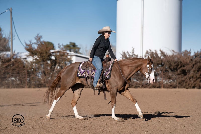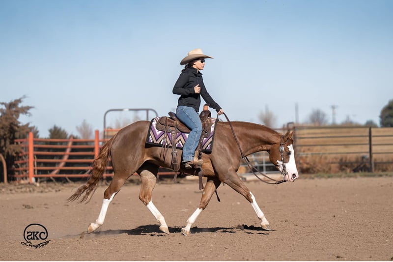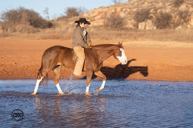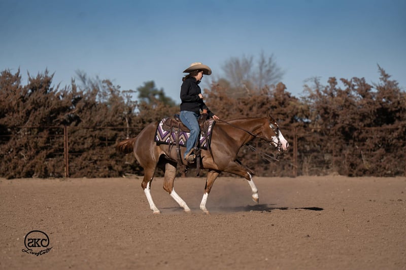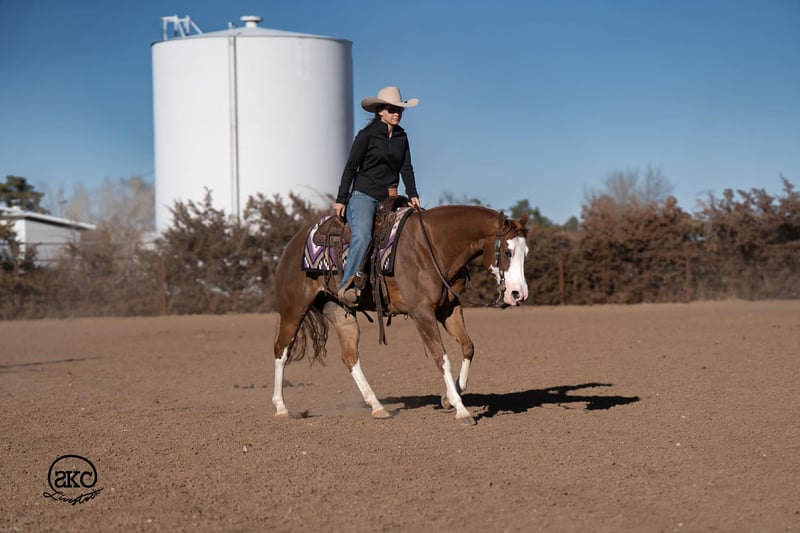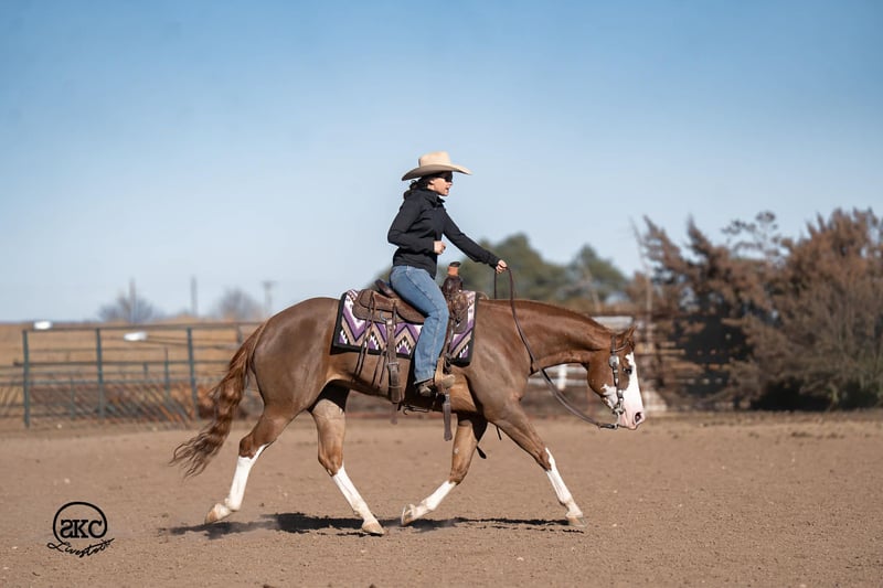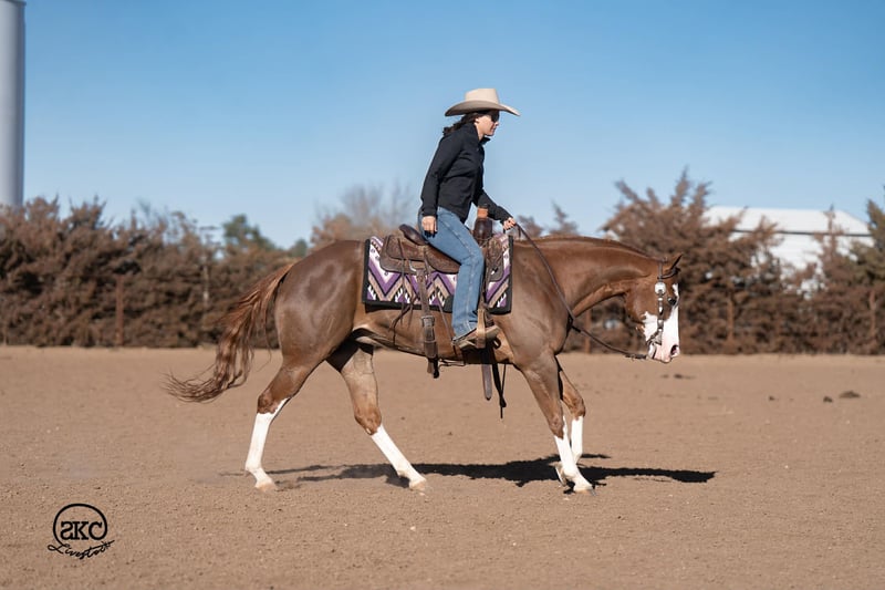 🌟𝑨𝒑𝒓𝒊𝒍 𝐀𝐋𝐋 𝐒𝐓𝐀𝐑 𝐋𝐈𝐍𝐄𝐔𝐏🌟 Happening now thru MONDAY | APRIL 6th - Available EXCLUSIVELY on HorseBid's website! For more details and to register visit: www.Horsebid.com CONSIGNOR CONTACT: SKC Livestock 806-282-7093 LOCATION: Canyon, TX BREED: Quarter Horse REGISTERED: Yes REGISTERED NAME: A Brown Eyed Girl COLOR: Sorrel HEIGHT: 15 AGE: 6 GENDER: Mare Allow us to introduce, A Brown Eyed Girl aka Pixie a gorgeous, double registered sorrel mare that has been successfully shown and has won money in the ranch classes. She has all the chrome and eye appeal you could possibly put on one and to top it off she was raised by Hilldale Farm. Pixie is sired by Heavy Duty Chex earner of over 140k and out of a daughter of the great Colonels Smoking Gun. Pixie is a beautiful mover and is broke to death. She has a stylish long trot, a nice jog and she circles pretty. This flashy lady spins both directions side passes both ways and is light in her face and says soft as butter. This is a horse you can leave off for any amount of time and not have to worry about she will stay the same quiet, kind and gentle ride on even the coldest stays. Pixie is an old soul and has been a favorite for our little ones and the more novice riders around our barn. We have rode Pixie outside extensively to both trail ride and to gather cattle, she crosses water, and rocky terrain with ease, she’s even quiet and safe to ride through our busy little town. Pixie has no spook or bad habits and is extremely versatile. We have tried hard to find her limits and just never seem to, she has a huge heart and a tremendous amount of try. We have rode her everyday possible, bareback, double, triple, English western heck we have even used her to pony some colts she never tells you no. Pixie has a sweet personality she likes people and likes attention but still has the perfect manners. This is truly a dream horse, please call us with any questions.