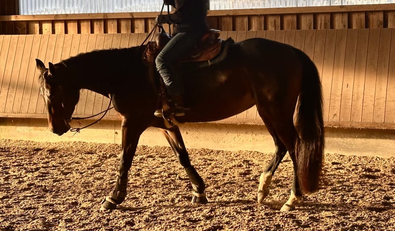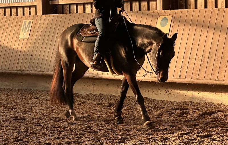 Meine Quarter Horse Stute Holly 💕 (geb. 06/2020, Dragon Jac x Jays Perfect Cee, 1,56 m) sucht auf diesem Weg einen besonderen Menschen, bei dem sie ankommen und weiter wachsen darf 🤍 Holly steht im athletischen Typ 💪🐎 und bringt ordentlich Go mit 🔥. Sie ist aufmerksam, fein und sensibel – eine Stute, die zuhört, mitdenkt und eine ehrliche, feine Verbindung zum Menschen sucht ✨ Sie wünscht sich einen Menschen, der mit Geduld, Klarheit und Gefühl arbeitet. Ruhige Führung, klare Strukturen und sanfte Kommunikation geben ihr Sicherheit 🤎. Wer Spaß daran hat, mit einem Pferd partnerschaftlich zu arbeiten, gemeinsam zu wachsen und Vertrauen zu entwickeln, wird in Holly eine außergewöhnliche Partnerin finden 💫 Holly wurde schonend angeritten, kennt und liebt die Bodenarbeit und wurde in Richtung Allround ausgebildet ✨. Sie kennt das Gelände , war auf Wanderritten unterwegs und wurde zweimal auf Turnieren vorgestellt 🎀. Sie war immer gesund, der Zahnarzt war vor kurzem ebenfalls da. Holly ist kein Anfängerpferd, zeigt keine Unarten und ist für Menschen geeignet, die Erfahrung im Umgang mit sensiblen, motivierten Pferden haben. Aktuell steht sie in Boxenhaltung mit Paddock, ist barhuf und kennt den geregelten Stallalltag 🌾 💖 Platz vor Preis! Für Holly steht ein liebevolles, passendes Zuhause mit Zeit, Herz und Verständnis an erster Stelle – kein Notverkauf Der passende Sattel kann bei Bedarf miterworben werden 🙂 📩 Bei ernsthaftem Interesse freue ich mich über eine Nachricht Weitere Infos, Bilder und Videos gerne auf Anfrage 😊