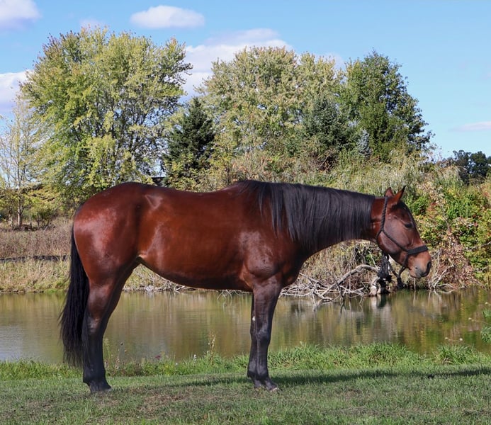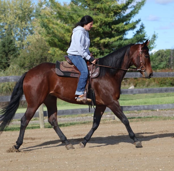 ⚜️𝐓𝐇𝐄 𝓗𝓮𝓻𝓲𝓽𝓪𝓰𝓮 𝐖𝐢𝐧𝐭𝐞𝐫 𝓒𝓵𝓪𝓼𝓼𝓲𝓬⚜️ Happening now thru MONDAY | DECEMBER 29th - Available EXCLUSIVELY on HorseBid's website! For more details and to register visit: www.Horsebid.com CONSIGNOR CONTACT: Blackstone Stables 248-390-6831 LOCATION: Howell, MI BREED: Quarter Horse REGISTERED: Yes REGISTERED NAME: R Rita’s Royal Asset COLOR: Bay HEIGHT: 15.2 AGE: 5 GENDER: Mare R Rita's Royal Asset is a 2020 AQHA Bay Mare. She is safe, and reliable. Rita is a stunning bright bay who stands 15.2hh! She’s the ultimate all-around partner — safe, steady, and experienced both in the arena on the trails and out working the cows! She's the type of mare that can roll her sleeves up and do a full days work on the ranch but also get a bath and venture into the show ring the next day. She has stunning conformation and her bloodlines go back to These Irons are Hot, who is leading sire in the hunt seat industry, known for passing on his winning traits, size, movement, and disposition to his offspring. Rita is extremely willing and eager for a job. She takes to everything with ease and is an all around natural. Rita is safe, dependable, and a smooth ride. She is 100% youth safe. Kids as young as 7 have ridden her in play day events. She has every button one could ask for while being calm enough to teach a kiddo or nervous adult. We have started some western dressage with her. She's got light and elegant moment, balanced gaits, knows her leads, has her flying changes and her breaks are good. She also comes equipped with excellent power steering. Shes been exposed to many miles in the woods, around the cows and every obstacle you can think of. She has also climbed the sleeping bear sand dunes and has galloped the shoreline of Lake Michigan! She's not one to spook. Rita has also been ridden English and this girl can jump! She's the point and shoot type who's very adjustable to the jumps. She also has automatic flying changes. The sky's the limit on what she can do. From being a trusty trail partner to, working EQ, western dressage, hunters, or moving cattle she's the one. The whole family can enjoy her as she will adapt to her rider. Her manners are A+, she's not mareish and gets along with all others outside.