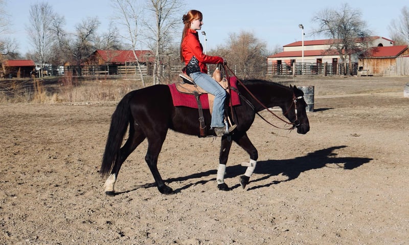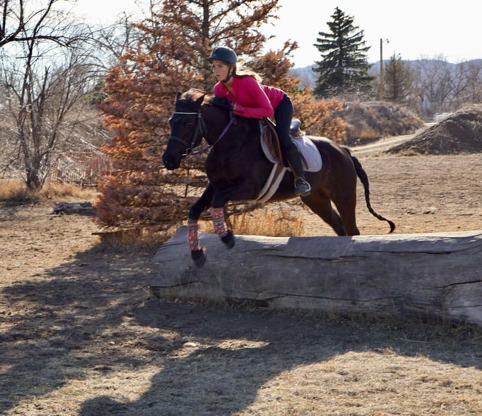 ONLINE AUCTION Place your bids at www.PlatinumEquineAuction.com Starting Bid $3500 Auction ends March 16th, 2025 Need a new saddle? Check out White Rock Saddles on our website or Facebook! Raja is a 6 year old jet black Quarter pony who stands at 14 hands and has an absolute heart of gold! This pony has a ton of try, is extremely sweet, first one to meet you at the gate and gets along with all other horses and livestock! Raja is VERY safe, calm and sweet for the whole family but is also versatile enough to be competitive in lots of disciplines. Raja has a great walk/jog/lope in the arena, will stop off of just your voice and is light and supple in the bit. Raja goes English or western and knows her collection and frame up, has great tuck and scope over a course and has already jumped up to 2’3 with room to improve. Raja would make a very cute 4-H or pony club prospect! Raja has been trail ridden all over as well, Up in the mountains, downtown Fort Collins you name it, she’s seen it. She is excellent in a group or by herself, she is not herd bound and will lead or follow. Raja has seen bikes, lots of traffic, town commotion, wildlife, etc. Raja will cross anything you put in front of her and is not scared of flags/tarps etc! She loves the water, has crossed rivers and bridges and we’ve even taken her swimming! Raja is the absolute perfect size for a small adult or kiddos wanting to get started in their new equine adventure or further their skills and looking for a step up pony! Check out rajas video and come see this sweet mare! Located in Fort Collins, CO. Contact Dynamite Horses Thea 970-632-3644 with any questions. ONLINE AUCTION Place your bids at www.PlatinumEquineAuction.com Starting Bid $3500 Auction ends March 16th, 2025 Need a new saddle? Check out White Rock Saddles on our website or Facebook!