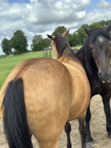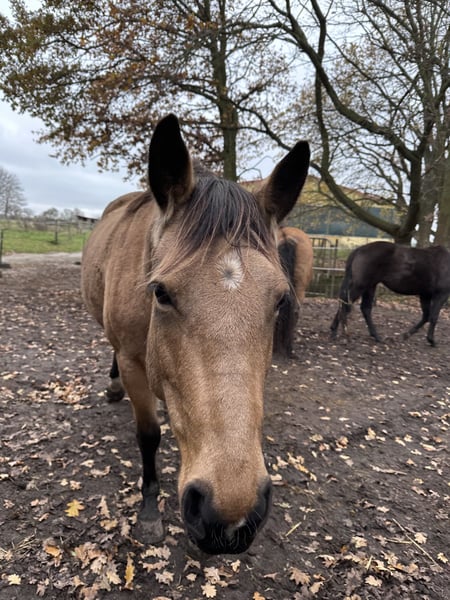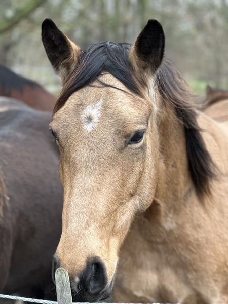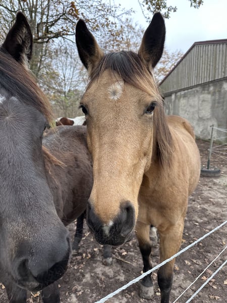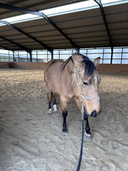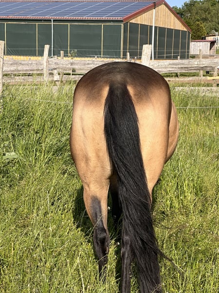 For sale: a beautiful American Quarter Horse mare, born in 2019. She impresses with her friendly nature and willingness to please. With a height of 14.9 hands, she is ideally suited for Western riding disciplines or can accompany her rider through thick and thin in leisure riding. She impresses with her versatility and eagerness to perform. "Skippa" is well-suited for Western riding and demonstrates a strong willingness to learn. She has a calm, shy, yet agreeable demeanor. She is healthy, well-groomed, and regularly dewormed. Please feel free to contact me for more information or if you are interested.