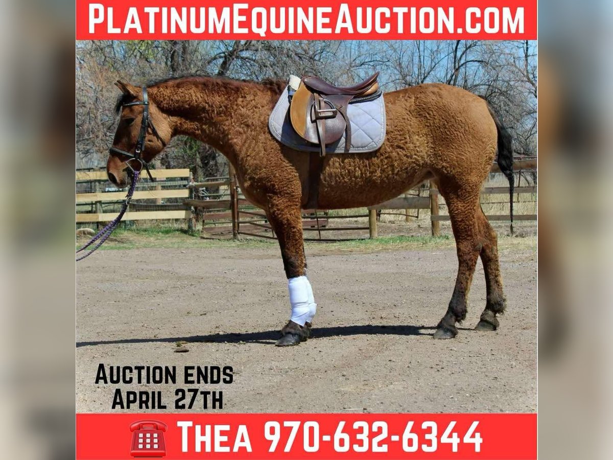ONLINE AUCTION Place your bids at www.PlatinumEquineAuction.com Starting Bid $3500 Auction ends April 27th, 2025 Need a new saddle? Check out White Rock Saddles on our website or Facebook! Hear about Halsey… Halsey describes all the characteristics of An American Bashkir Curly horse very well! On top of her sweet and laid back demeanor she is safe for anyone and loves other horses/livestock and people alike. Halsey stands at 15 hands is built like an absolute tank, she has been barefoot her whole life with very hardy feet, she is one of the only horses that we will take into the mountains on rough terrain and steep trails without shoes. Halsey can go English or western, has been ridden over cross rails and even taken on light cross country courses, though it is new for her she shows a passion and a true future in it! Halsey has dabbled in western pleasure, has a nice slow job and lope and stops off of your seat. She backs up with light pressure and has a pretty rollback. Halsey is easy and simple to ride, she does not have any fancy buttons which makes her great for kids and beginner riders who need a horse to guide and take care of them. Halsey loves trails and has been right through downtown! She has been all over Fort Collins and is a horse you can just drop your reins with and enjoy the ride. Check out her video and come meet this sweet and rare mare! Located in Fort Collins, CO. Contact Dynamite Horses Thea 970-632-6344 with any questions. ONLINE AUCTION Place your bids at www.PlatinumEquineAuction.com Starting Bid $3500 Auction ends April 27th, 2025 Need a new saddle? Check out White Rock Saddles on our website or Facebook!