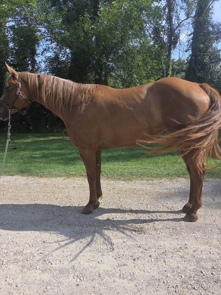 VERFÜGBAR BEI DER ONLINE-HORSE-AUKTION unter www.MagicHorseAuction.com GEBOTE AB JETZT BIS DIENSTAG, 14. OKTOBER! – SOFORTKAUF MÖGLICH! *Der endgültige Preis wird auf der Auktionsseite festgelegt* KONTAKT DES ABGEBERS: Sarah Collins, 419-822-7526 STANDORT: Walbridge, Ohio Zunächst einmal: Sage kann als AQHA registriert werden. Ihr Hengstvater ist Kissin the Girls, der keine Vorstellung braucht, und ihre Mutter ist Only Invite the Hot. Ich habe diese einzigartig schöne Stute seit sie 4 Monate alt ist aufgezogen. Das Leben hat mich nur daran gehindert, sie weiterhin zu registrieren. Sage ist 16,2 Hand hoch und gebaut wie ein echtes Kraftpaket. Kein Bild kann dieser vielseitigen Allround-Stute gerecht werden! Sage begann ihre Showkarriere als Fohlen im Showmanship und Halter. Sie wurde in Ranch, Western und English Pleasure, Horsemanship, Equitation und Trail gezeigt, bis sie 4 Jahre alt war. Auch Musterläufe meistert sie hervorragend. Sie wurde nie überfordert oder überarbeitet. Sie wurde artgerecht aufgezogen und langsam sowie korrekt eingeritten. Ihr Trab/Longtrot ist für Pleasure-Shows fertig ausgearbeitet. Der Longe braucht noch eine Feinabstimmung für Western Pleasure, ist aber für Ranch- oder English-Disziplinen bereit. Man kann diese Stute den ganzen Tag vorführen, mit wenig Vorbereitung – ihre Ausdauer lässt nie nach! Sie liebt die Showpiste und kennt ihre Aufgabe bestens! Sie reitet einhändig und ist spurentrainiert. Sehr sensibel auf die Beine reagiert sie bei 360-Grad-Drehungen oder Sidepass. Sage kann wirklich alles! Sie ist sehr an das Showleben gewöhnt und wurde überallhin transportiert, um in allen Disziplinen zu zeigen. Im Gelände überwältigt sie alles, was ihr im Weg steht, inklusive Baumstämme, Brücken, Schlamm und Wasser. Sie folgt, geht in der Mitte oder führt, alles auf lockerer Zügelhaltung. Sage achtet sorgfältig auf ihre Füße und sorgt stets für ihren Reiter. Sie ist ein echtes DIY-Pferd, das monatelang im Stall stehen kann und jedes Mal genau so reitet wie zuvor. Sie erinnert sich an ihr Training und bleibt braves Pferd! Verkehrssicher, gewöhnt an Traktoren, Motorräder, Fahrräder und Quad. Ihr ganzes Leben wurde sie bestens gepflegt: regelmäßig geimpft, entwurmt und gepflegt. Sie hat nie Hufeisen getragen oder gebraucht, selbst auf felsigem Gelände nicht. Nie lahm gegangen. Regelmäßig behandelt durch Chiropraktiker und Massagen. Nie injiziert oder anderweitig behandelt. Sage lebt in einer gemischten Herde mit 24/7 Weidegang auf Grasheu. Sie ist sehr pflegeleicht bei nur 6 Pfund Hafer täglich. Sie steht auch hervorragend im Stall, ohne zu nagen, zu graben oder zu treten. Sie begrüßt dich immer am Tor, egal in welcher Größe das Weideland ist. Sie lässt sich gut anhängen (Twitch für die Ohren), verladen, baden und anbinden – absolut ohne Macken oder schlechte Angewohnheiten! Der EINZIGE Grund, warum diese wunderschöne Stute verkauft wird, ist, dass ich mir 2023 einen Rückenbruch zugezogen habe. Es ist nicht fair, sie im Feld stehen zu lassen oder nur gelegentlich im Gelände zu reiten. Ich beantworte gern alle Fragen zu ihr unter Sarah Collins, 419-822-7526. Transport kann überall mit sicheren, bekannten Transportunternehmen arrangiert werden. Verpassen Sie nicht diese beeindruckende Stute, die noch eine ganze Showkarriere vor sich hat und hochwertige Fohlen produzieren kann!