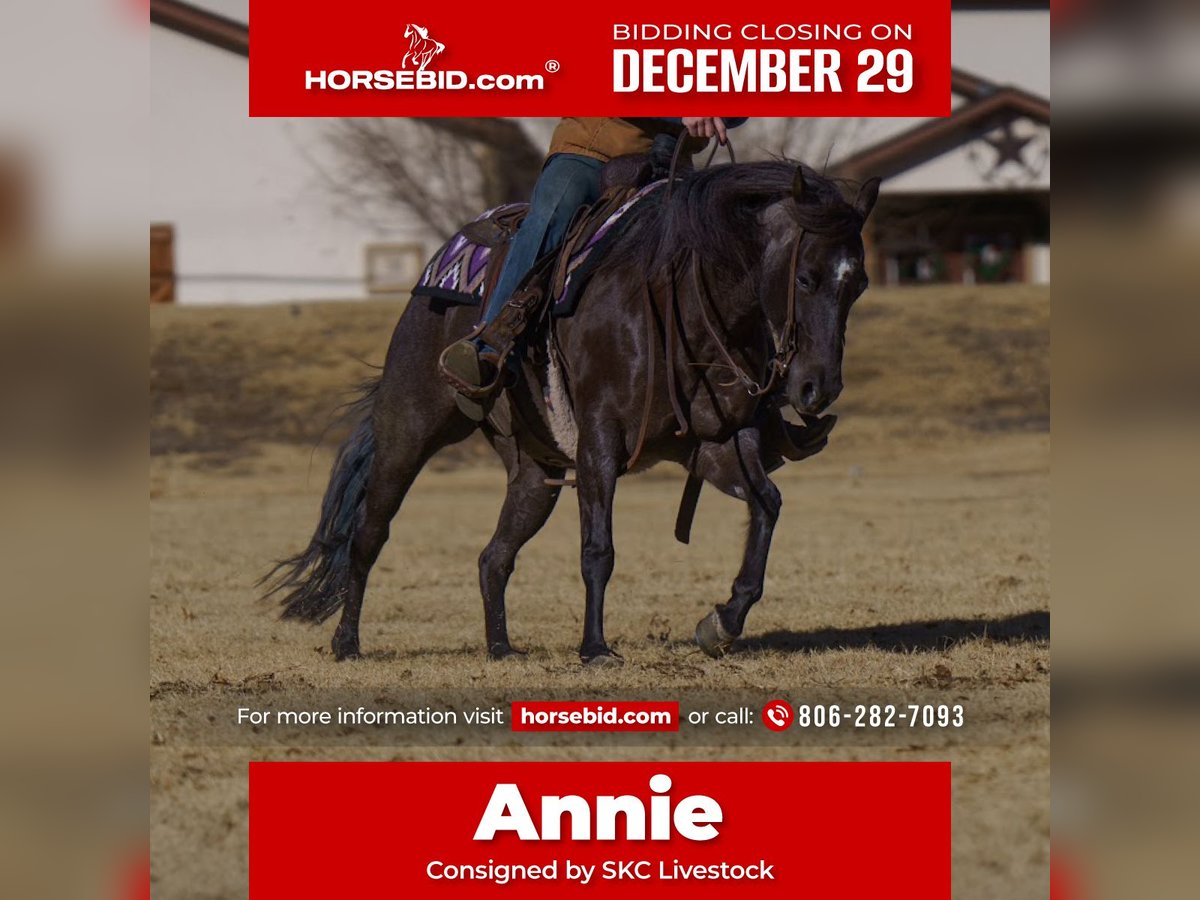 ⚜️ 𝓗𝓮𝓻𝓲𝓽𝓪𝓰𝓮 𝐖𝐢𝐧𝐭𝐞𝐫 𝓒𝓵𝓪𝓼𝓼𝓲𝓬⚜️ Happening now thru MONDAY | DECEMBER 29th - Available EXCLUSIVELY on HorseBid's website! For more details and to register visit: www.Horsebid.com CONSIGNOR CONTACT: SKC Livestock 806-282-7093 LOCATION: Canyon, TX BREED: Quarter REGISTERED: Yes REGISTERED NAME: ANIE DOT COM COLOR: Blue Roan HEIGHT: . AGE: 7 GENDER: Mare This super fun, gentle blue roan mare is the kind everyone is looking for — handy sized, absolutely beautiful, and genuinely safe for youth, non-pros, and riders of any level. She has a sweet personality that’s easy to love, paired with a quiet, kind demeanor and natural athleticism that makes her a joy to ride and be around every single day. She is sired by Boon A Little, an earner of over $118,000 and a producer of more than $1 million, and out of the great mare MS Highliner, a proven producer with $384,855. Her pedigree speaks for itself, yet her calm mind and rideability are what truly set her apart. This mare is a great mover with the ability to be very competitive in the show pen, while remaining uncomplicated and user-friendly for youth and non-pro riders. She has been used to doctor cattle outside and is a favorite for early morning shipping and sorting, staying quiet, attentive, and dependable in real-world ranch situations. Athletic without being hot and responsive without being intimidating, she stays very gentle, forgiving, and good-minded. She crosses water and rocky country with ease, is sure-footed and confident, and is incredibly easy to ride and handle — the kind that builds confidence rather than taking it away. A rare combination of beauty, pedigree, gentleness, versatility, and a personality you can’t help but fall in love with, this blue roan mare is truly the total package for a youth, non-pro, or family-oriented program, while still having the ability to shine in the show pen or sorting pen.