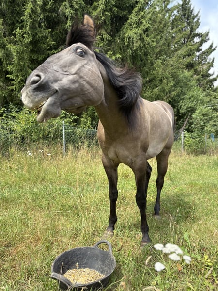 **Annonce de vente : Jument American Quarter Horse** À vendre, une magnifique jument American Quarter Horse, née en 2018. Sa couleur est enregistrée comme Grullo dans le passeport équin. La jument est dans un état brut absolu et convient à tout. Son caractère amical et sa volonté d'apprendre en font une partenaire idéale pour les cavaliers de loisir. La jument est facile à manipuler, en parfaite santé et est régulièrement vaccinée et vermifugée. Elle est particulièrement adaptée pour le western allround. Idéalement à acheter avec https://www.ehorses.de/american-quarter-horse-stute-10jahre-brauner-western-allround-deckhengst-heilsbronn/4522045.html Si vous êtes intéressé par cette superbe jument et souhaitez en savoir plus sur elle, je me réjouis de votre message !