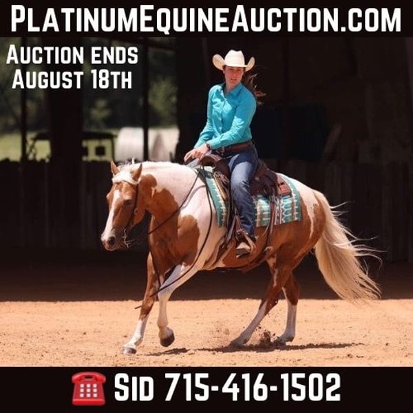 ONLINE AUCTION Place your bids at www.PlatinumEquineAuction.com Starting Bid $3500 Auction ends August 18th, 2024 Need a new saddle? Check out White Rock Saddles on our website or Facebook! Shinin Cat (“Shada”) – 2018 Registered APHA Mare, that stands 14.2hh. Have you ever seen such a CUTE mare? From her unique color and gorgeous long mane, to her sweet, tolerant, curious personality, Shada is the unicorn most people only dream of owning in their life. This bombproof, beautiful mare is confident and SAFE. She’s been ridden all over by adults and children alike.While she has a great handle on her, stops on a dime, spins, sidepasses to any obstacle and can work a gate or handle a rope; she can also dial it back in a moment’s notice to accommodate even the greenest riders. Shada has been used as a kids lesson horse and is incredibly kind to riders of all levels. Standing at 14.2, she is just the perfect size for kids and adults. Shada is a stout girl and surefooted, ready to hit the trails or head to the arena. You can comfortably ride her out with other horses or on her own. She is ready and willing to do anything with you. On top of her long and valuable resume, this mare also boasts some big names on her papers, including High Brow Cat, Shining Spark, and more. She is friendly, loves kids, and will take care of whoever is riding her. Shada has one of the sweetest personalities and will catch you in the field! She is super safe and has no silly business about her at all. Hop on her bareback and ride off into the sunset, or throw a saddle on her after time off. She will be the same for you every day. Shada is very comfortable at all the gaits! She has all the buttons you could want, whether she is taking the kids for a ride or just being handy around the ranch. This confident girl does not spook at a thing. You can carry the flag, drag logs, open gates, cross bridges and tarps, anything you can come up with. Outside of work, her favorite hobbies include swimming and playing soccer with the big ball. She’s been trail ridden extensively. Hops in and out of the trailer. Hauls great! She’s ponied other horses, and also been ponied. With the APHA market and shows exploding, there has never been a better time to own a registered Paint horse! This mare could also be registered Pinto and Palomino if you’re interested in hitting other color shows as well. Shada is very comfortable with having her feet handled. You will be your farriers new favorite client! She stands tied, and loves her bathes! She is happy to live inside or out. No vices. 100% sound. Passed PPE with flying colors. This beautiful girl is ready to meet her forever family! For more info contact Zacharias Horsemanship Sid 715-416-1502 Located in Adair, OK. ONLINE AUCTION Place your bids at www.PlatinumEquineAuction.com Starting Bid $3500 Auction ends August 18th, 2024 Need a new saddle? Check out White Rock Saddles on our website or Facebook!