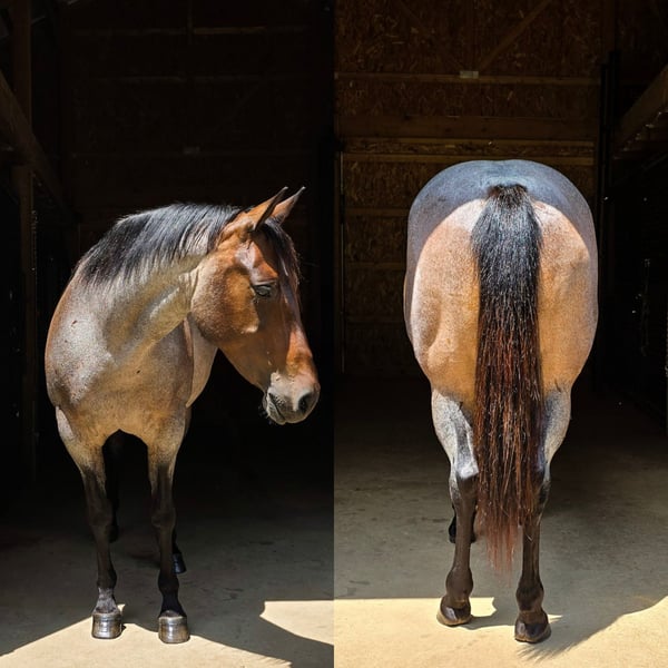 VERFÜGBAR AUF DEM ONLINE-PFERDE-AUKTION bei www.MagicHorseAuction.com GEBOTE AB JETZT BIS DIENSTAG, 14. OKTOBER! – SOFORTKAUF MÖGLICH! *Der endgültige Preis wird auf der Auktionsseite festgelegt* VERKÄUFERKONTAKT: Mary Kurtz, 330-464-8895 STANDORT: Dundee, Ohio KG Blue Moon Erizon, auch bekannt als Moon, ist eine wunderschöne, gut gebaute Roan-Stute. Ich weiß gar nicht, wo ich bei dieser beeindruckenden Stute anfangen soll – sie ist einfach fantastisch! Wir haben sie seit über vier Jahren. Moon ist gut ausgebildet, umgeritten, verfügt über drei tolle Gänge. Sie wechselt die Führungswechsel, reagiert auf Legen, seitwärts, rückwärts und ist ein echtes Vergnügen auf Trails. Sie überquert Wasser, Logs und läuft sowohl an der Spitze als auch im Schlepptau. Moon ist der Typ Pferd, das ich aus der Weide hole, einmal reite und dann meinem Ehemann für eine Trailrunde übergebe. Sie ist sehr zuverlässig beim Transport zu verschiedenen Reitplätzen und steigt aus dem Anhänger, als wäre sie schon oft dort gewesen. Moon läuft barfuß und wird regelmäßig getrimmt. Sie ist zahn- und coggins- sowie impfmäßig auf dem neuesten Stand. Sie wurde bereits bei Paraden geritten und meistert diese problemlos – sie ist weder ängstlich noch nervös bei lauten Geräuschen oder Trubel. Auch nachts bei Mondschein zu reiten, macht ihr nichts aus – für sie ist das kein Problem. Moon hat vorbildliche Bodenmanners und ist eine absolute Freude im Umgang. Sie ist tragend, mit einem Herzschlag eines NRHA-Preisträgers, Hey Joe, der am 13. März 2026 erwartet wird. Hey Joe ist ein Nachkomme des 8,4-Millionen-Dollar-Sires Smart Spook und stammt von Best Stop ab, mit einem PE von 1,1 Millionen. Wenn Sie schon immer davon geträumt haben, eine Stute zu besitzen und ein Fohlen großzuziehen, ist dies Ihre Chance. Wir haben drei Fohlen von ihr und sie ist eine großartige Mutter. Sie wird nicht nervös, wenn man in ihren Stall mit dem Fohlen geht, und hatte bisher keine Komplikationen. Moon kann eventuell scharren, wenn sie längere Zeit im Stall steht. Sie ist eine der Pferde, die man einfach gern um sich hat, ohne viel Aufhebens. Moon liebt es, zu gefallen, und würde in Ranch-Riding-Wettbewerben hervorragend sein, aber ich sehe sie auch gut als Roping-Pferd. Sie ist zuverlässig beim Ziehen von Gegenständen, Tarp, Bullenpeitsche und überquert Hindernisse. Sie kann auf einem Sack sitzen, lädt problemlos, badet gut und macht beim Schmied eine gute Figur. Sie ist zu 100 % gesund. Für weitere Informationen zögern Sie nicht, Mary unter 330-464-8895 zu kontaktieren.