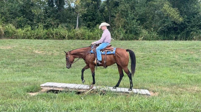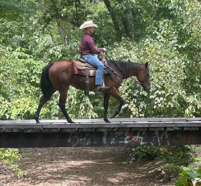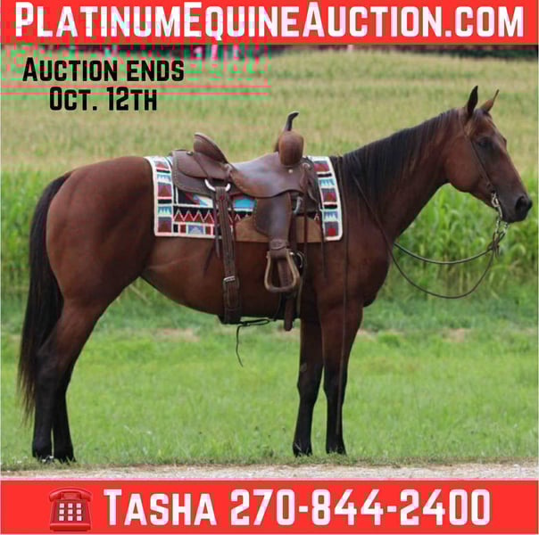 ONLINE AUCTION Place your bids at www.PlatinumEquineAuction.com Starting Bid $3500 Auction ends October 12th, 2025 Need a new saddle? Check out White Rock Saddles on our website or Facebook AQHA 2017 Streaks Capri Pie… Pie is a pretty blood bay standing about 15 hands tall. She has been trail ridden extensively by an older gentleman for the past 5 years. He also roped cattle on her at his farm as well as ponied colts on the trails. Pie has been on overnight trail rides, packed saddle bags, and tied to the picket line overnight. Pie will trail ride alone, in small groups, as well as large groups. She is use to traffic, ATV’s, heavy machinery and dogs. You can ride down the road, ride the farm, head to a local playday, go hit the trails and relax. She will travel the trails with ease, go through the creeks, over bridges and up and down the big cliffs. Pie will neck rein, W/T/C, side passes, stops when asked and backs up. On the ground Pie has great ground manners and will be patient and respectful everyday. She stands tied quietly, stands for farrier, to groom, tack up and baths. She jumps right in the trailer and unloads easily. She will stand at a mounting block for you to get on and off and doesn’t move until asked. We invite you to come check Pie at our barn in Henderson, Kentucky. We are happy to assist with transportation arrangements. PPE at buyers expense. For any questions about Pie please call or text S&T Livestock Tasha 270-844-2400. ONLINE AUCTION Place your bids at www.PlatinumEquineAuction.com Starting Bid $3500 Auction ends October 12th, 2025 Need a new saddle? Check out White Rock Saddles on our website or Facebook