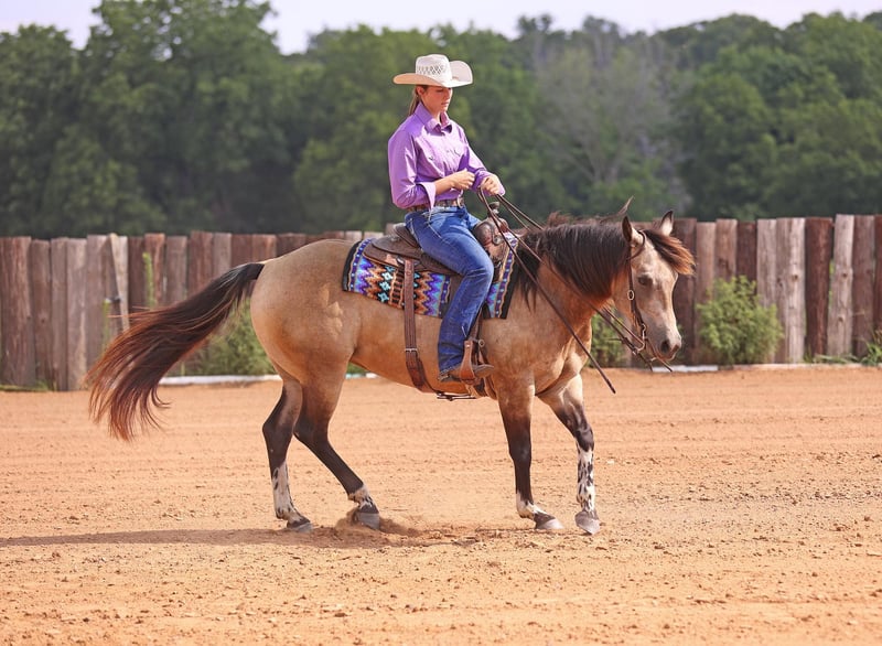 ONLINE AUCTION Place your bids at www.PlatinumEquineAuction.com Starting Bid $3500 Auction ends September 15th, 2024 Need a new saddle? Check out White Rock Saddles on our website or Facebook! This mare is so special! Miss Hollywood lives up to her name with all her glamour! She’s a 14.2h, 2017 model, registered APHA buckskin tobiano mare with all the chrome you could want, and a personality to match. She is more than just a pretty face though. She is the SMOOTHEST horse you’ll ever ride. Hollywood has been ridden all over the ranch, on trails, through ponds and over bridges. She’ll drag tarps and logs, or any obstacle you might need to move. She’s happy to go to work every day and is an easy-going, laid back mare who is willing to please riders of all levels. Not only does Hollywood have just about every button installed, she also knows some fun tricks you can show off. She’ll lie down on cue and will also side pass to any mounting block, fence, or tree stump, etc if you need to climb on easily. You can ride her bareback and in a halter if you want to take her out for a leisure stroll when the weather’s nice. There’s literally nothing like having that bond with a horse you can trust. Miss Hollywood knows all the important stuff too. She will circle both directions. Steers easily! Stops and backs up light as a feather. Her gaits are comfortable balanced. She has a great side pass and spin. We’re very proud of this mare and all she has to offer. She’s 100% sound. Radiographs available. No vices. Stands politely for the farrier. Loads and ties with no issues. Super easy to catch in a field. She’s comfortable being stalled or turned out! Don’t miss out on this gem of a mare! Call Zacharias Horsemanship Sid 715-416-1502 with any questions. Located in Adair, OK. ONLINE AUCTION Place your bids at www.PlatinumEquineAuction.com Starting Bid $3500 Auction ends September 15th, 2024 Need a new saddle? Check out White Rock Saddles on our website or Facebook!