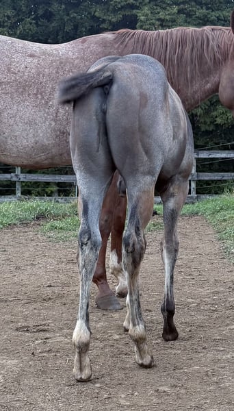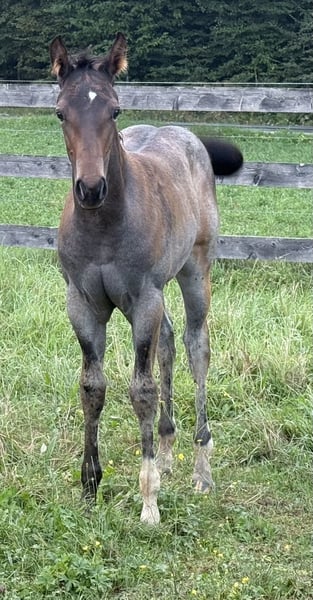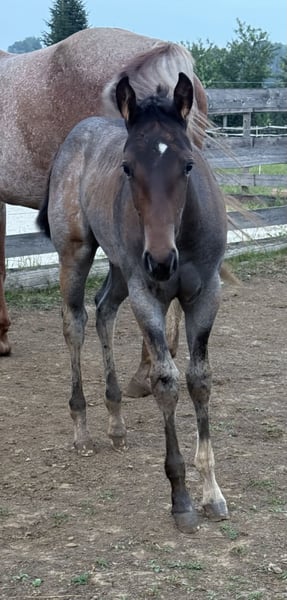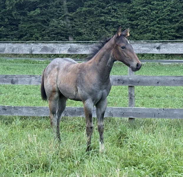 SuddenChocolateGrace alias Gracy 2025 AQHA filly in bay-roan Sire: Chocolate After Dark Dam: HC A Secret Sudden All-round prospect! CHOCOLATE AFTER DARK is a Reserve European Champion and German Champion. He impresses with a great conformation and the best mind one could wish for. With only four foal crops, "Elvis" is already the sire of a European Champion, Reserve European Champion, and Futurity Champions! HC A SECRET SUDDEN is sired by the legendary RL Best Of Sudden (no introduction needed) and out of ALotta good Scotch. Her sire is also the legendary Zippos Mr Good Bar! The best bloodlines come together in our outstanding filly! Gracy is truly unique! This filly is TALENTED. She combines correct conformation with a flat front leg, her sweet and open disposition, and her special bay-roan color makes her definitely a standout! She is perfect for future amateur, youth, and open classes. She is currently learning the basics of handling, which includes tying, clipping, loading, and washing. First show her - then breed her - Gracy will surely one day make an excellent broodmare. She combines the best pedigree, body, character, and color! Gracy is only sold to a loving and suitable show home! She is located in southern Austria - Styria! Schrotter Quarter-horses Contact me via Facebook, Instagram, or phone;