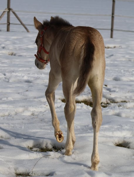 GOTTA LOPIN LUCINDA, geboren op 26-01-2026, buckskin Onze "Liz Gotta Gun" (Lisbeth) en onze "Blackberry" hebben een echt schattig merrieveulen gefokt – je kunt gewoon zeggen dat de combinatie perfect past. "Lucinda" heeft alle positieve eigenschappen van haar ouders meegekregen: een correcte bouw en benenstand, veel charme en uitstraling, bewegingpotentieel, en ze zal zeker een betrouwbare rijpartner worden, net als haar ouders. Dit betekent dat een paardenliefhebbend gezin veel plezier met haar zal hebben. Ze zal ook een uitstekend rijpaard zijn voor reining en de ranch horse-klassen, zoals Ranch Riding, Ranch Trail, Ranch Rail, en ook in de allround-competities. Haar pedigree spreekt eveneens voor zich, met vele hoogwaardige verervers en legenden uit de Quarter Horse-gefokte, zoals Hollywood Dun It, Grays Starlight, Smart Little Lena, Continental King en King P-234. Het AQHA-papier is online in te zien en wordt binnenkort naar ons toegestuurd. Ze wordt binnenkort gechipt en het DQHA-equidenpaspoort inclusief fokkerscertificaat aangevraagd. Beide ouders hebben een 5-panel-test en IMM/MYH1-test ondergaan. Net als al onze veulens groeit ze op in een kudde met leeftijdsgenootjes en andere paarden, en wordt ze vakkundig opgevoed. Regelmatige ontwormingen en afspraken met de hoefsmid zijn voor ons vanzelfsprekend. Bij verkoop wordt ze levensverzekerd inclusief dierenarts-gezondheidsonderzoek. De kosten en het risico blijven bij ons tot de overdracht (=voltooid 6e levensmaand). Op verzoek en voor rekening van de koper kunnen inschrijvingen in de Futurity van de NRHA en de NSBA (vanaf dit jaar mogelijk) en het jongepaardenprogramma van de EWU worden geregeld. Haar ouders en meerdere halfbroers en -zussen zijn op onze boerderij te bezichtigen. Op de laatste foto's zijn haar ouders te zien. Tel. 0170/4443194 Veel foto's en meer informatie op www.goetz-quarterhorse.de