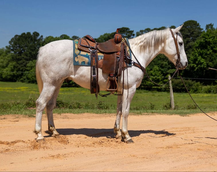 ONLINE AUCTION Place your bids at www.PlatinumEquineAuction.com Starting Bid $3500 Auction ends June 1st, 2025 Need a new saddle? Check out White Rock Saddles on our website or Facebook! Leo is a 9 year old gray gelding, he stands 14.2 hands tall. Leo has been mostly used as a trail horse, super easy to get along with, he has been ridden by all different ages. Leo is great outside and inside and has been trail rode all over! He crosses the water and goes wherever whenever with no hesitation. Leo has also been hauled to lots of playdays and fun shows and does super well at all the events. He has also been used on the ranch moving cattle and to gather and sort! Don’t miss out on this super nice little young gelding! He is located in Rusk TX, nationwide shipping is available. Call or text Bar S Livestock Sarah at 605-759-0491 for more info or to set up a time to come meet him! ONLINE AUCTION Place your bids at www.PlatinumEquineAuction.com Starting Bid $3500 Auction ends June 1st, 2025 Need a new saddle? Check out White Rock Saddles on our website or Facebook!