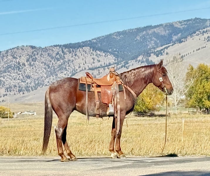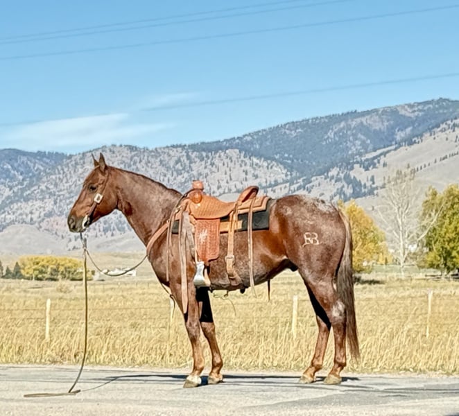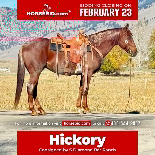 💎 𝐓𝐇𝐄 𝓓𝓲𝓪𝓶𝓸𝓷𝓭 𝐒𝐇𝐎𝐖𝐂𝐀𝐒𝐄 💎 Happening now thru MONDAY | FEBRUARY 23rd - Available EXCLUSIVELY on HorseBid's website! For more details and to register visit: www.Horsebid.com CONSIGNOR CONTACT: S Diamond Bar Ranch 406-544-9987 LOCATION: Middleburg, VA BREED: Quarter Horse REGISTERED: Yes REGISTERED NAME: RB Smarter Than Most COLOR: Red Roan HEIGHT: 14.3 AGE: 10 GENDER: Gelding Hickory is a 10-year-old AQHA registered red roan gelding that stands 14.3 hands tall. This shapey, good-looking, royally bred horse has been used on the ranch mostly for riding pastures and checking cows. He has also been trail ridden in the mountains and all over the trails. He has a very friendly demeanor and loves to be around people. He is very easy to catch and will come find you when you’re out doing chores. He is well broke and can be ridden one-handed or two, whichever you prefer. He will side pass to open and close gates and picks up his leads correctly in both directions. He has the smoothest, short hobby-horse lope that feels just like a rocking chair. He is trained to let you get on from a step or mounting block and will side step over to make it easy to mount. He crosses water, bridges, and all trail obstacles with ease. He loads and hauls well and stands great for the farrier. He loves a bath after a long day of riding. He sells 100% sound in every way. We have had vet exams and x-rays done that can be shared if needed. This is a nice, all-around gelding that is ready to go to work for his new owners. Feel free to call or text 406-544-9987 — we’d be happy to tell you more about Hickory.