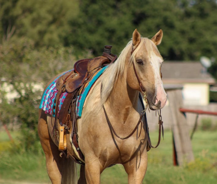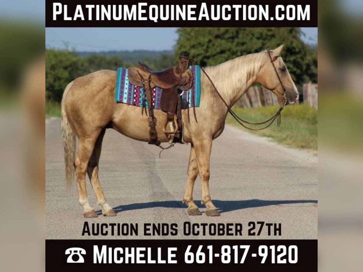 ONLINE AUCTION Place your bids at www.PlatinumEquineAuction.com Starting Bid $3500 Auction ends October 27th, 2024 Need a new saddle? Check out White Rock Saddles on our website or Facebook! Everyone STOP there scroll and check out this GORGEOUS guy!!! Ken is a golden palomino gelding and the PRIME age of just 8 years old with his WHOLE life ahead of him . He stands 15hds tall. Ken has dabbled in just a little bit of everything . They say blondes have more fun and I can promise, you will have fun riding this guy plus he gets all the looks when out on the town because he’s just that gorgeous shiny golden color that gets everyone’s attention. Ken rode right down the famous bricks of Exchange Ave at the historical Forth Worth Stockyards with zero issues at all , with 100’s of people everywhere he was completely unbothered by them , along with carriages , heavy traffic and loud music he rode right down through it all like a seasoned veteran on a Saturday night . If riding in town isn’t your thing don’t worry he will ride out just the same from the grasslands to the mountains. He will cross water with zero hesitation, cross logs , bridges , and tarps . He has also been rode in thick brush out checking cows and fences. He is absolutely user friendly and you don’t have to be a cowboy to ride him . He’s an easy enjoyable ride. In the arena Ken will walk , trot and lope nice easy circles . This fancy boy is super sweet and a laid back type of dude . He can be stalled or turned out in a herd . He is currently out in a herd setting and is easy to catch with no drama . He ties , stands for the farrier . He trailers great also . Contact us to come try him, or we can set up a FaceTime also . If you need help with transport don’t hesitate to ask we have a list of reputable haulers that can get him safely to your doorstep world wide. Located in Stephenville, TX. Contact M$ Performance Horses Michelle 661-817-9120. ONLINE AUCTION Place your bids at www.PlatinumEquineAuction.com Starting Bid $3500 Auction ends October 27th, 2024 Need a new saddle? Check out White Rock Saddles on our website or Facebook!