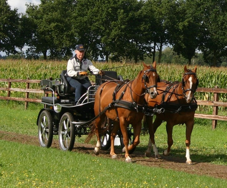 Wegen der Einstellung meines Hobbys im Fahrsport verkaufe ich mein Zweispänner AQHA. Sie werden als Paar verkauft, da sie ihr ganzes Leben lang zusammen sind. Namen der Pferde: DH FRECKLE JACK und DH FLASHY OKIE. Beide sind braun, korrekt geimpft und beschlagen. Aangespannt und für die Freizeit geeignet.
