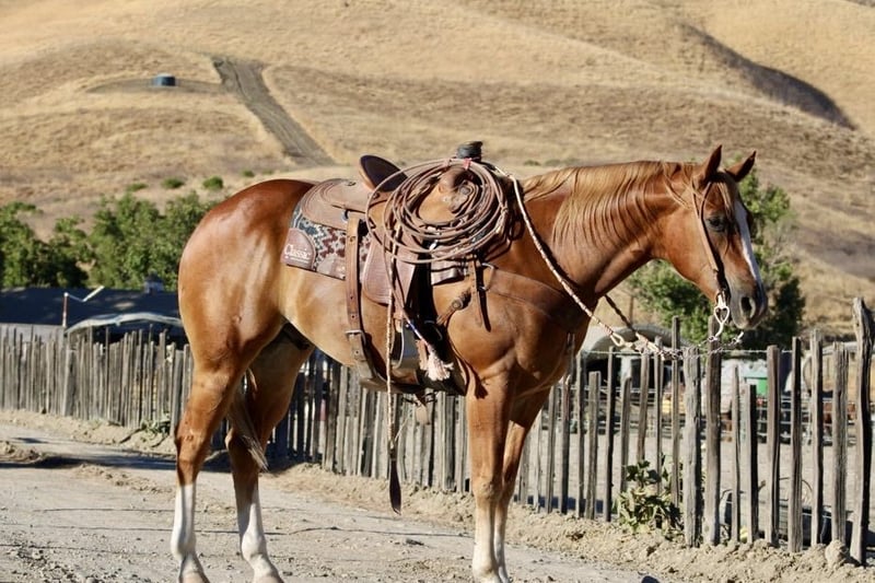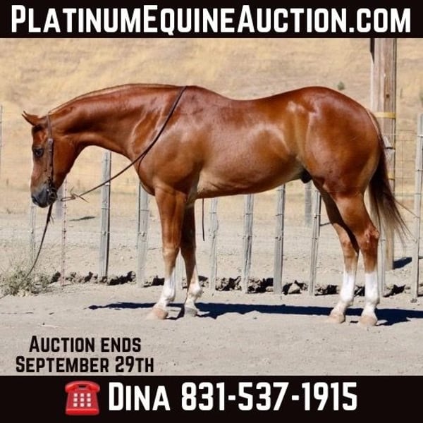 ONLINE AUCTION Place your bids at www.PlatinumEquineAuction.com Starting Bid $3500 Auction ends September 29th, 2024 Need a new saddle? Check out White Rock Saddles on our website or Facebook! Meet Chubbs, the stunning 8 year-old sorrel gelding with four white socks and a flaxen mane and tail. Standing at an impressive 15.1 hands tall, this beautiful big stout boy is truly a sight to behold. With his smooth gaits and calm disposition, Chubbs is ready for any adventure that comes his way.In the arena, Chubbs shines with his impeccable form and correct movements. He lopes circles with ease and collection, displaying his natural abilities. His stop is smooth and precise, making it easy for any rider to control him. And when it comes to those handy turn arounds Chubbs can do them with grace and style. But don’t let his show ring skills fool you Chubbs is just as comfortable out on the ranch. He has gathered cattle and participated in brandings proving himself to be a reliable partner in any working situation. This boy’s eagerness to please knows no bounds. Chubbs also excels as a trail horse, navigating through rough terrain with ease. Whether it’s crossing long stretches of water or tackling narrow trails he is ready for the challenge. Chubbs handles obstacles such as tires, tarps, and balls he does it all with confidence. You can count on him to handle any challenge that comes your way during your adventures together. But what sets Chubbs apart from other horses is his exceptional temperament. He is safe for riders of all levels – from novice riders who are just learning the ropes to experienced equestrians looking for their next show partner.Chubbs handles every situation like a pro while still maintaining his unique style. Not only is he talented under saddle, but he also possesses excellent ground manners. Chubbs ties, clips, bathes without fussing about anything making him an absolute dream to have around in the barn or pasture. He loads into trailers without hesitation and hauls like a seasoned traveler. With his handsome looks and charming personality, it’s no wonder why Chubbs is the talk of the town wherever he goes. He loves people and is always excited to meet new friends. This boy could easily become your next beloved family member, bringing joy and companionship into your life. Chubbs is a one-of-a-kind horse that excels in every aspect from his stunning appearance to his impressive skills under saddle and on the ranch. With him by your side, you’ll be ready to take on any challenge with grace and style. Come meet Chubbs today and see for yourself why he’s everyone’s favorite! Contact Longhorn Ranch Dina 831-537-1915 located in Paicines, CA. ONLINE AUCTION Place your bids at www.PlatinumEquineAuction.com Starting Bid $3500 Auction ends September 29th, 2024 Need a new saddle? Check out White Rock Saddles on our website or Facebook! ONLINE AUCTION Place your bids at www.PlatinumEquineAuction.com Starting Bid $3500 Auction ends September 29th, 2024 Need a new saddle? Check out White Rock Saddles on our website or Facebook!