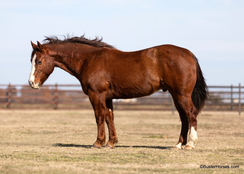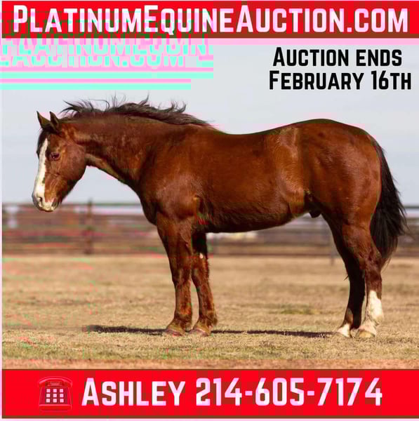 ONLINE AUCTION Place your bids at www.PlatinumEquineAuction.com Starting Bid $3500 Auction ends February 16th, 2025 Need a new saddle? Check out White Rock Saddles on our website or Facebook! Root Beer is a big thick made 9 year old, 15.1h stunning gelding! He is gentle every time you grab him and can live for weeks turned out to pasture and you can just catch him saddle him and go. He has the sweetest kind personality, and wants to be your friend and is in your pocket all of the time. He is the one that comes up to the fence just to spend time with you and he loves any attention you give him. When you pull in the driveway, he comes over just to see you in the truck! He is broad and comfy to ride, does not go a single tiny inch faster than you want to go, he is content to walk and jog around all day on a big loose rein. He is exceptionally good riding down the side of the highway and riding into town and around and in traffic. He hops right on the trailer like a seasoned old gentleman, and he is extremely easy to saddle, bridle, and will stand next to anything quietly while you climb on! He happily crosses water, and will ride anywhere you want him to in a group of horses, or he is also extremely comfortable and quiet and relaxed riding out all alone. Zero issues worrying about the barn or leaving his buddies. He is also super cozy and easy to ride bareback, we have thrown a halter on him and swung up on him many times. Please feel free to call us anytime if you have any questions about Root Beer, contact Buster Horses Ashley 214-605-7174 Root Beer has a full set of shoes on, his teeth were just done by our equine dentist this week, he was just shod last week, and he also was dewormed at that time. He is in great shape, a little on the fat side – and is ready to go to work doing whatever job you have for him. Watch his video, and to see additional videos, go to our website: BusterHorses.com or our Facebook page Buster Horses Root Beer is located in Weatherford, TX – one hour from Dallas / Fort Worth International Airport. He is an easy day trip, or fun overnight trip to come and try out, from anywhere! We are experienced, knowledgeable sellers, and we can help with quickly arranging affordable shipping to any buyer’s location – we have experience shipping worldwide – including regularly to Hawaii, Canada, Mexico, Europe, and South Africa. ONLINE AUCTION Place your bids at www.PlatinumEquineAuction.com Starting Bid $3500 Auction ends February 16th, 2025 Need a new saddle? Check out White Rock Saddles on our website or Facebook!