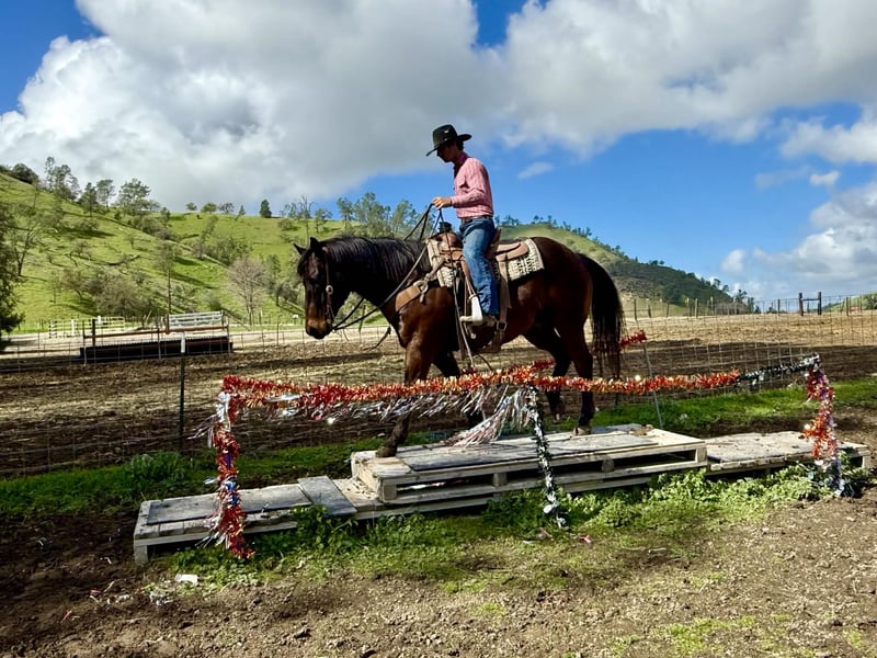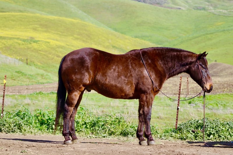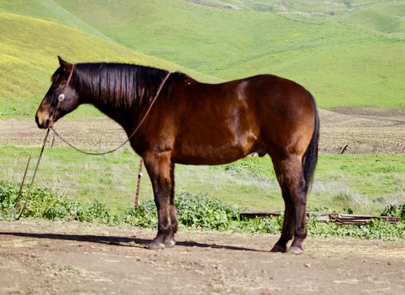 "AVAILABLE ON ONLINE HORSE AUCTION AT www DOT PlatinumEquineAuction DOT com BIDDING OPEN NOW thru SUNDAY | MARCH 1ST! *Final price will be determined on auction site* CONSIGNOR CONTACT INFO: Longhorn Ranch 831-537-1915 - LOCATION: Paicines, CA Bear — A Horse You Can Trust Every Time Rock Solid Bear is a 15.1-hand, 10-year-old and a stout 1200 pound classic old school foundation beautiful bay gelding with a steady mind and an honest, kind nature. He is a big, stout teddy-bear of a horse with a sweetheart personality — the kind you can pile the kids on, hand the reins to Grandma, and never give it a second thought. He prefers an easy, unhurried pace and stays relaxed and patient, making him a great fit for riders of all ages and experience levels. Used on the ranch his entire life and ridden extensively in state parks, Bear handles new places, new riders, and changing surroundings with ease. He is comfortable leading or following, stays quiet in a group, and goes along willingly without needing constant direction. Obstacles, flags, and traffic are nothing to him — he stays the same calm, steady horse no matter what’s going on around him. On the trail, Bear is as honest as they come. He travels low-headed and easy, goes where he’s pointed, and keeps a steady rhythm from start to finish. No rushing, no jigging, no drama — just calm, confident movement whether riding out alone or with others. In the arena, Bear is uncomplicated and enjoyable. He rides soft and collected with smooth, comfortable gaits and a dependable stop. He stays relaxed and unhurried, adjusting easily to his rider and remaining steady throughout the ride. Bear is easy to handle both in and out of the saddle. He ties, clips, and hauls quietly, stands patiently for the farrier, and does well living in a stall or turned out in a pasture. He gets along well with other horses, is not barn or buddy sour, and can sit and come right back to work like nothing changed. Bear is the kind of horse you don’t have to manage — a big, stout sweetheart you can trust to take care of his rider every step of the way. Longhorn Ranch Dina Cabral: 831-537-1915 Transportation assistance available nationwide Call or text for more information or to schedule a visit