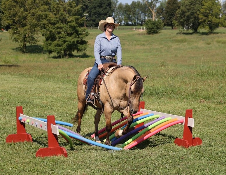 Colonel Doc Patron ist für den Best Of The West Horse Sale in Gladstone, NJ, bestimmt und wird am 27. und 28. September verkauft. Wenn man alle Zutaten, die man sich von einem Pferd wünscht, in einen Mixer geben und diesen einschalten könnte... dann hätte man, glaube ich, Doc! Doc ist ein 14.2H, 2016 Reg AQHA, Wallach und schauen Sie sich das schöne buckskin Fell, seine lange gewellte Mähne und die süßeste Persönlichkeit an, die man sich wünschen kann! Und wie er reitet, wie er schöne Kreise zieht, sich dreht, Slide-Stops macht... er hat die Bewegungen, die zu seinem guten Aussehen passen! Erfahrung? Oh, die hat er auch! Von Ranching über Roping bis hin zum Trailreiten macht er alles und das richtig! Doc ist großartig an der Ferse, er ist ein gutes Team-Sortierpferd und er ist zuverlässiger als ein 4×4 auf den Trails! Steile Hänge, felsiges Gelände, Bäche, Baumstämme, Gräben... er überwindet sie alle mit Leichtigkeit! Doc ist ein entspannter Pferdetyp, der es nie eilig hat und ein Pferd, an dem die ganze Familie jahrelang Freude haben wird! Rufen Sie Eric unter 606-308-2461 an, wenn Sie Fragen haben! Für weitere Informationen gehen Sie auf www.AdamsHorseAndMuleCo.com