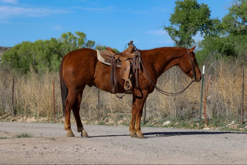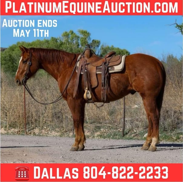 ONLINE AUCTION Place your bids at www.PlatinumEquineAuction.com Starting Bid $3500 Auction ends May 11th, 2025 Need a new saddle? Check out White Rock Saddles on our website or Facebook! Axel is a grade 10 year old gelding standing 14.3hh. This gelding is the absolute definition of a been there done that ranch horse! Axel has seen countless miles of rough country across Arizona and New Mexico, doing absolutely every single job around the ranch, making him versatile, safe, and very very broke. Drag calves to the fire, sort in the alley, work a gate, load trucks, doctor yearlings, gather in the big country, ride miles of fence, pack salt, you name it and Axel has done it!! Axel is surefooted as can be even if you’re in the rockiest roughest country around. Absolutely so spooky and bulldoze right on through whatever you put in front of him. Thick brush, rough country, flowing waters, anything you can think of Axel will mosey right on through unphased as can be. This awesome gelding is not only great to ride outside, but just as fun in the arena! He will walk trot and lope both ways with ease, as well neck rein, side pass, and has a great stop! If you’re looking for a great gelding to go do a long days work, mosey on down the trail, or have a blast playing around in the arena, then look no further. Axel is your guy! He is easy to catch and good to groom, saddle, bridle, bathe, shoe, and load! Will come with a clean coggins and health! Located in Camp Verde, AZ. Contact D/C Equine Services Dallas 804-822-2233. ONLINE AUCTION Place your bids at www.PlatinumEquineAuction.com Starting Bid $3500 Auction ends May 11th, 2025 Need a new saddle? Check out White Rock Saddles on our website or Facebook!