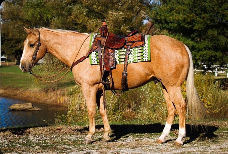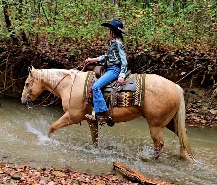 ⚜️ 𝓽𝓱𝓮 𝐇𝐨𝐫𝐬𝐞𝐦𝐚𝐧'𝐬 𝓢𝓱𝓸𝔀𝓬𝓪𝓼𝓮⚜️ Happening now thru MONDAY | DECEMBER 1st - Available EXCLUSIVELY on HorseBid's website! For more details and to register visit: www.Horsebid.com CONSIGNOR CONTACT: Pleasant Valley Equine 434-981-3863 LOCATION: Robards, KY BREED: Quarter Horse REGISTERED: Yes REGISTERED NAME: Jed COLOR: Palomino HEIGHT: 15 AGE: 10 GENDER: Gelding I'm thrilled to offer this sweet & kind gelding for sale. I hope he will fill your life with as much joy as he has done for me & my family this summer. If you're looking for more than a riding companion, but a best friend, Jed's your guy. He is always excited to see me when I go to catch him & walks right up to me, even if we rode 10-20 miles the day before. Every time I've thrown a leg over Jed, I knew he was going to take care of me & my son (4 year old). Absolutely no spook or meanness about him.Jed is one of the best trail horses I personally have had the privilege to ride. He is a great lead horse. Jed will be confident, brave and set a good pace. If there was ever a horse I would trust to go off on a long ride completely by myself, I would choose Jed. He is sure-footed and has experience with tons of wildlife with no issues. He handles the small deer paths with ease and will walk and take his time stepping over down trees. No ravine or ditch is too steep, and he absolutely loves to swim. The kids will have a blast in the summer taking turns cannonballing off him into a pond. He is the true definition of a family horse. Jed is big boned and big bodied, standing 15 hands and weighing close to 1250 lbs. He could definitely pack a beginner husband with ease. Jed has been trained to sidepass over to a mounting block, tables, or a log to pick up his rider. He is great for the farrier, standing for saddling, trailering, bathing, and pretty much anything you would wish to do with him. Jed is always willing and wanting to be with you and make you happy. Jed is no stranger to the arena, either. I have a huge lesson program, and I used Jed for lessons, packing kids as young as 6. He was always forgiving. He handled the young ones bouncing and pulling, and he was always great for the bareback lessons, too. You will hunt this world over to find a horse this dependable and safe. But what really makes Jed special is his love for his person. Don't miss your chance to feel the connection and have more than just a riding partner but a best friend. Call today! We'd love to take you for a ride on Jed so you can meet his soothing and relaxing energy. 434-981-3863