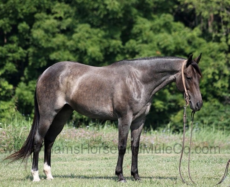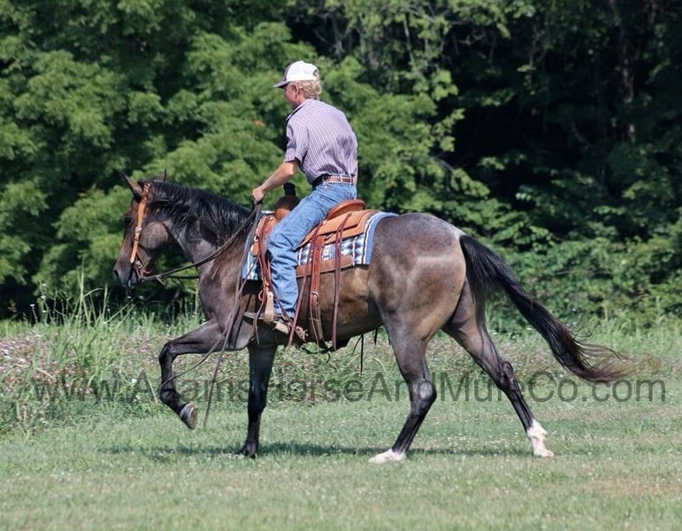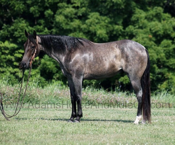 Go to visit our website for more pics and a video. AHAMC has been in the horse business and sold horses over the internet since 2005. We have a long track record of success with hundreds of happy customers. We work hard to match riders with the correct horses and specialize in beginner safe, family friendly horses that have been used and checked out by our family! Jazz Royal Bandit is a well built roan gelding standing around 15hh. He is a 2015 Model and he is registered in the AQHA with a good pedigree. Jazz has been used around the ranch for sorting and penning cattle. He knows how to work on the ranch but his mind is more about leisure! Jazz loves to just cruise along slow and easy down the trails and he is a horse that the whole family can ride and enjoy! He is an excellent trail horse and has been ridden in multiple states. He will cross creeks, ditches, logs and navigate rough rocky areas. He is safe riding in traffic. He has a smooth jog, a very smooth slow collected lope, has a good stop, turns a circle both ways and backs with ease! Jazz is a confident horse on the trails and will lead the crew, head out alone with no issues! He has been exposed to all kinds of wildlife such as deer or turkey or other animals like cows or dogs and will go anywhere that he is asked too. He has been rode many miles in the mountains of Eastern Kentucky and encountered every obstacle possible on the trail. He will go up or down even the steepest slopes, across deep creeks, over downed trees, and over all types of rough terrain while still being sure footed. Jazz is not cinchy, cold backed, does not crib or weave. Jazz is a horse that anyone would be proud to own and one that anyone will love!!! Feel free to call Eric 606-308-2461 with any questions.