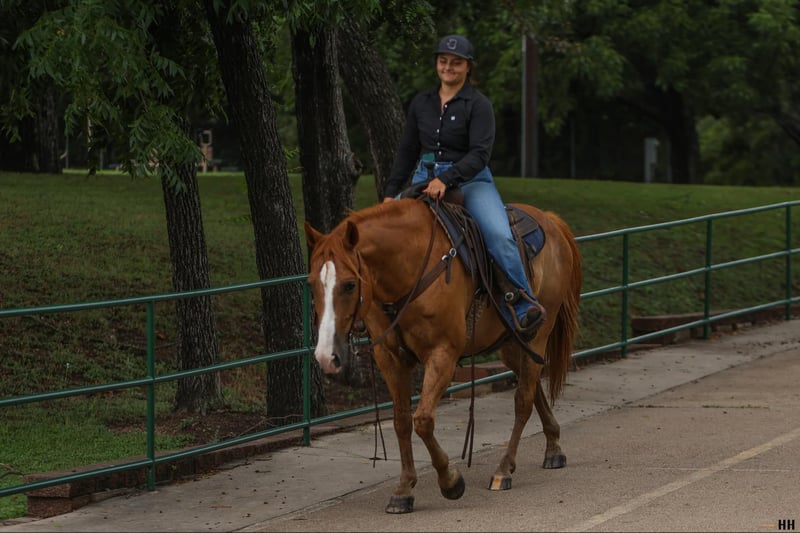 ONLINE AUCTION Place your bids at www.PlatinumEquineAuction.com Starting Bid $3500 Auction ends August 11th, 2024 Need a new saddle? Check out White Rock Saddles on our website or Facebook! Courage is a 9 year old, grade sorrel gelding standing at 15h. Courage is an easy keeper with a nice stout build. He has spent all of his life as a family trail horse and that is truly what he enjoys most! He has an adorable in your pocket personality while still being very well mannered. He will run to you from the far end of the pasture just for some attention and stand nicely to be haltered. Courage is a very safe and gentle horse who has been extremely consistent with me in any time off I’ve given him. Courage’s favorite gait is the walk. He will trot and lope if asked but he certainly prefers to walk everywhere he goes. Courage is ridden best with 2 hand, direct reins but with someone familiar with neck reining does well also. Courage is the type of horse that goes anywhere you want without question. I have taken him through water, over loud noisy bridges, ridden through cattle, walked by big water fountains, and did fantastic with traffic in town. If you’re looking for the perfect trail horse that isn’t in a rush Courage is your guy. Courage has been my favorite go-to horse when it comes to checking fences, getting the mail and packages, or just going for a leisurely ride to relax at the end of my day, its been especially fun for me to do these bareback in a halter. Courage is a gentleman on the ground as well as under saddle. He ties nicely to be groomed, saddled, and bathed. He does well by himself or with other horses in the barn or outside, there aren’t many things that can get this sweet guy worked up. He loads on the trailer with ease and backs off nicely. Courage has been an excellent citizen for my vet, farrier, and dentist and is up to date on those cares. Courage will make an excellent trail companion and family horse, he is so trusting of people and loves attention like a puppy dog! For more questions or information on Courage please call Sydney with SRS Training and Sales at (518) 935-8282. Courage is located in Granbury, TX. If you LOVE Courage and are not local the SRS team is happy to help arrange shipping anywhere in the US! ONLINE AUCTION Place your bids at www.PlatinumEquineAuction.com Starting Bid $3500 Auction ends August 11th, 2024 Need a new saddle? Check out White Rock Saddles on our website or Facebook!