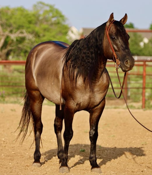 ONLINE AUCTION Place your bids at www.PlatinumEquineAuction.com Starting Bid $3500 Auction ends July 21st, 2024 Need a new saddle? Check out White Rock Saddles on our website or Facebook! Check out this gelding that will turn heads anywhere you go. Chapo is a registered 9 year old gorgeous grulla with the all shape you want. He stands 15.1 weighs 1200lbs. He was bred by the world renowned, Shining C Grulla Horses! Chapo is a beautiful mover and could truly go any direction, western or English. He is strong and willing and GENTLE! He is a been there done that kind of gelding, the kind you can ride BRIDLESS through a parade with hundreds of people around!! Loud noises, traffic, people, busy streets and flags everywhere never once phased him! Take him through any kind of country or terrain you want he won’t skip a beat. If you want a horse that’ll be the same every time he’s your guy. Go check your cows on him or have a a nice relaxing day with him on the trails. He will last as long as you need him to at the speed of your choice. Chapo has been used to rope cattle outside and started on slow cattle in the arena! He stands tied for baths and for the farrier with no problems. Chapo enjoys a good day on the trails. He lopes nicely both ways with a big floaty trot. Chapo will cross any obstacle in front of him. We can help arrange delivery to any where in the United States, even Hawaii and Canada as well. Our ranch is located in Stephenville, TX. Contact Makenna Hartzel 817-659-3778 with any questions. ONLINE AUCTION Place your bids at www.PlatinumEquineAuction.com Starting Bid $3500 Auction ends July 21st, 2024 Need a new saddle? Check out White Rock Saddles on our website or Facebook!