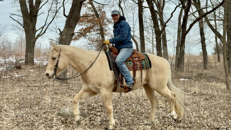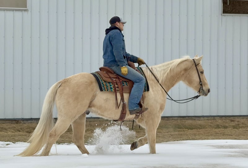 💎 𝐓𝐇𝐄 𝓓𝓲𝓪𝓶𝓸𝓷𝓭 𝐒𝐇𝐎𝐖𝐂𝐀𝐒𝐄 💎 Happening now thru MONDAY | FEBRUARY 23rd - Available EXCLUSIVELY on HorseBid's website! For more details and to register visit: www.Horsebid.com CONSIGNOR CONTACT: Gabriel Murphy 320-339-1458 LOCATION: Cannon Falls, MN BREED: Quarter horse REGISTERED: No COLOR: Palomino HEIGHT: 15.2 AGE: 11 GENDER: Gelding Alvin is a 11 year old, 15.2 hand STOUT, beautiful palomino grade gelding with striking amber eyes, a thick mane and tail, and all the bone and body anyone could ask for! Built the way everyone wants one and colored to match, he turns heads everywhere he goes! But Alvin is more than just good looks, he is the definition of a “good boy” and a true all around citizen. Under saddle, he is a complete gentleman! He confidently goes through water, over logs, through thick woods, across bridges, and even through traffic with ease. He walks, trots, and picks up both leads correctly, has an easy one hand neck rein, and solid turn around, staying steady and honest every step of the way! Alvin is the kind of horse you can trust, making him the perfect trail partner for even the most inexperienced riders! Alvin is no stranger to a day’s work either, he’s loaded trucks at the sale barns, and penned calves proving he has both the mind and the work ethic to get the job done! On the ground, he’s just as exceptional! Alvin will meet you at the gate, stands tied anywhere to be brushed, saddled, or bathed, and picks up all four feet without a fuss. He loads like a pro and stands quietly to be mounted! Nothing seems to bother Alvin, he takes everything in stride with a calm, steady demeanor! Alvin gets along with everyone he meets, from other people to other horses, he wants to be everyone’s best friend! It’s not often you find a gelding this experienced and beautiful with a personality to match! Alvin truly is one of a kind and anyone would love to have this special, solid, dependable, and most importantly safe gelding in their barn!