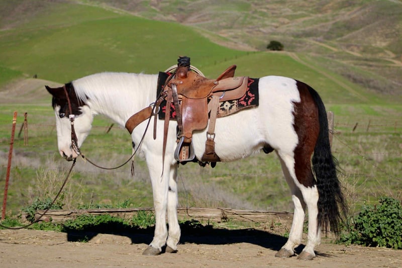 ONLINE AUCTION Place your bids at www.PlatinumEquineAuction.com Starting Bid $3500 Auction ends December 28th, 2025 Need a new saddle? Check out White Rock Saddles on our website or Facebook Blueboy is a handsome 12-year-old, 14.2hh paint gelding with two striking blue eyes and an easygoing, willing personality. He is a joy to be around and very simple to handle, making him a pleasant and reliable partner for a variety of riders. Blueboy has extensive experience on trails, roads, and in the arena. He excels on the trail and genuinely enjoys going on adventures. He travels confidently through steep, narrow terrain and moves with surefooted ease. He will lead the group without hesitation, ride calmly and consistently in the back, or go out alone with no issues. He is not buddy or barn sour and remains steady regardless of the situation. He also loves the water and will cross anything placed in front of him. Under saddle, Blueboy has a natural low headset and is very easy to direct. He neck reins, responds well to leg cues, has a dependable stop, and catches both leads easily in the arena. He is soft, responsive, and comfortable to ride. Blueboy is also good with time off and does not get fresh when brought back into work. He loads and hauls well and gets along nicely with other horses. With his temperament, trail experience, and solid training, Blueboy would make an excellent horse for trail competitions or for anyone looking for a trustworthy, enjoyable partner both in and out of the arena. He is located in Bitterwater, CA. for more info contact Cheyenne at 831-537-8746. ONLINE AUCTION Place your bids at www.PlatinumEquineAuction.com Starting Bid $3500 Auction ends December 28th, 2025 Need a new saddle? Check out White Rock Saddles on our website or Facebook