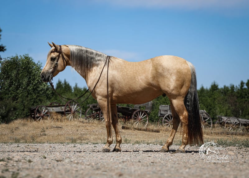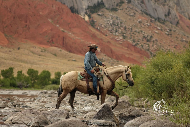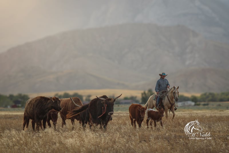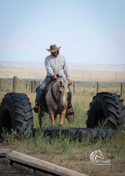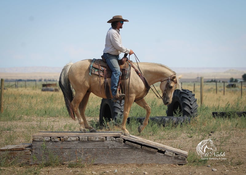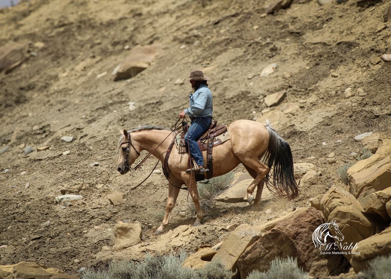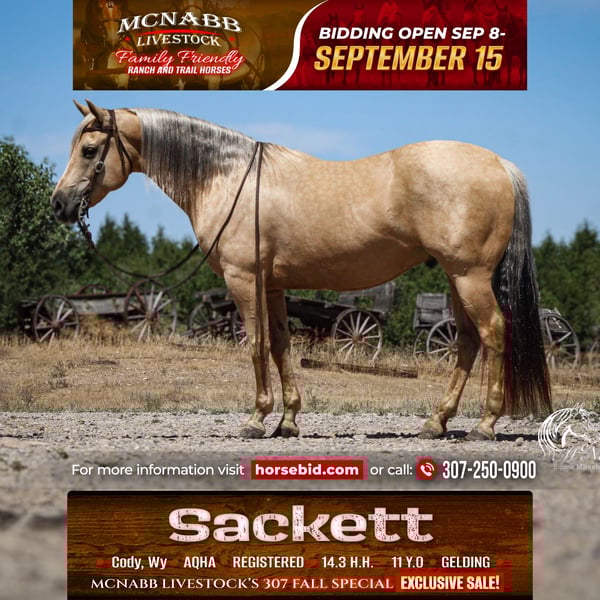 𝕄ℂℕ𝔸𝔹𝔹 𝕃𝕀𝕍𝔼𝕊𝕋𝕆ℂ𝕂's 🍂𝟑𝟎𝟕 𝐅𝐀𝐋𝐋 𝑺𝒑𝒆𝒄𝒊𝒂𝒍🍂 Happening now thru MONDAY | SEPTEMBER 15th - Available EXCLUSIVELY on HorseBid's website! For more details and to register visit: www.Horsebid.com CONSIGNOR CONTACT: McNabb Livestock LLC 307-250-0900 LOCATION: Cody, Wy BREED: AQHA REGISTERED: Yes REGISTERED NAME: Shinenugthreecash COLOR: Palomino HEIGHT: 14.3 AGE: 11 GENDER: Gelding Sackett is the prettiest palomino with a silver mane and tail. He is ones that turns heads and stands out everywhere we take him. He is your trail horse deluxe he has seen miles out on the trail, he knows how to follow a trail or he will go where you point him and he will create a new trail with you through the brush. He has been rode up and down the mountain gathering and pushing cattle. Sackett lopes pretty circles, has a nice stop. He is smooth to ride in all gaits, has a good one handed neck rein. We have used him for all aspects of ranch work, we’ve rode him out by himself a lot, gathered cattle, used him sorting in the corrals and easily works the gates. He has cow sense and will watch one. Sackett takes time off well. Saddles up the same with time off, no nonsense, no warm up needed. He has no vices or bad habits. We have used him to work colts, nothing rattled him even with the colts jumping around and spooking. He is just a good solid citizen that would be an asset to anyone. Sackett is easy to catch. Loads in and backs out of the trailer, hauls well. He has had a basic PPE, up to date on worming, dental and farrier. We welcome you to do your own PPE and to come to the ranch a to meet Sackett. We also are glad to help arrange transportation. We will hold the horses at no charge for a reasonable amount of time to get hauling arranged. For more information call 307-250-0900.