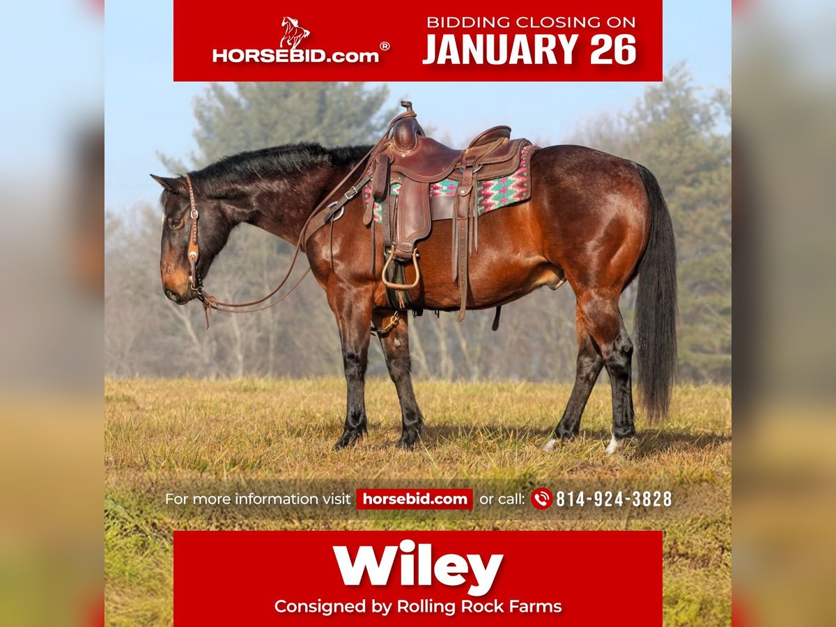 𝐉𝐀𝐍𝐔𝐀𝐑𝐘 ⭐️𝑨𝒍𝒍 𝑺𝒕𝒂𝒓 𝑳𝒊𝒏𝒆𝒖𝒑⭐️ Happening now thru MONDAY | JANUARY 26th - Available EXCLUSIVELY on HorseBid's website! For more details and to register visit: www.Horsebid.com CONSIGNOR CONTACT: Rolling Rock Farms 814-924-3828 LOCATION: Miola, PA BREED: Quarter horse REGISTERED: No REGISTERED NAME: Wiley COLOR: Bay roan HEIGHT: 14.3 AGE: 12 GENDER: Gelding Wiley is a 12 year old Quarter Horse gelding standing 14.3 hands tall. He is very calm and easy to handle on the ground with good manners. He stands quietly in cross ties, ties well, and is patient for bathing, grooming, and tacking. Wiley is uncomplicated to work around and has a steady, relaxed demeanor that makes him enjoyable to be around both in and out of the barn. Under saddle, Wiley rides nicely in the arena and understands his job. He neck reins correctly, walks, trots, and lopes willingly, and maintains good circles at all gaits. He rides off leg and seat cues and is not heavy in the bridle. Wiley has a smooth, comfortable way of going and stays quiet and consistent, making him suitable for a variety of riders. Outside of the arena, Wiley is a dependable trail horse. He rides confidently through tough and uneven terrain and is very sure footed. He has been ridden around dogs, goats, and farm equipment and handles new environments well without getting bothered. He is happy riding out alone or with other horses and remains level headed in different situations. In the pasture, Wiley gets along well with other horses and fits comfortably in the middle of the pecking order. He is easy to manage in a group setting and does not cause issues. Wiley is up to date on his rabies vaccination, has a current negative Coggins, and completed a full equine health examination on 1/12/26. He is a solid, honest gelding that would make a reliable arena and trail partner for his next owner.