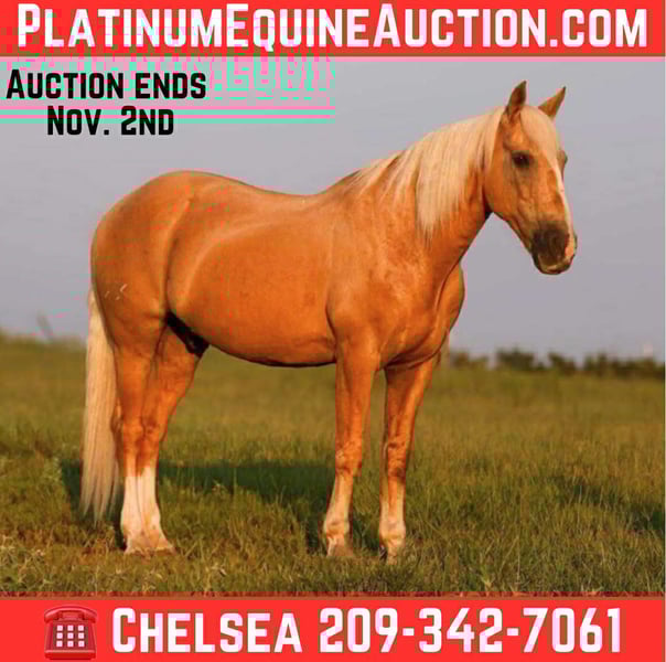ONLINE AUCTION Place your bids at www.PlatinumEquineAuction.com Starting Bid $3500 Auction ends November 2nd, 2025 Need a new saddle? Check out White Rock Saddles on our website or Facebook Meet Chance, a big, handsome 15H, stocky built, 11 year old, palomino quarter horse, gelding who’s spent his life as a true ranch hand. He knows exactly what a full day of work is—whether it’s doctoring yearlings out in the pasture or branding calves from sunup to sundown. When there’s a job to be done, Chance pins his ears, runs one down, and gives you an honest effort every single time. Despite his grit and work ethic, Chance is gentle and enjoyable to ride outside of the branding pen. He’s steady and dependable on the trail, making him the kind you can trust in any situation. He will go any where that he is asked to go on the trails, across creeks, over deadfall, scale steep slopes, takes his time and eases cross rough terrain… Chance is easy to shoe, load, bathe, and tie, and he gets along well with other horses both in the pasture and in the barn. If you’re looking for a strong, reliable gelding with the experience and heart to match, Chance is the partner you’ve been waiting for. For more info contact Chelsea with Coyote Hollow Ranch 209-342-7061 We are located in Mt. Vernon, TX. ONLINE AUCTION Place your bids at www.PlatinumEquineAuction.com Starting Bid $3500 Auction ends November 2nd, 2025 Need a new saddle? Check out White Rock Saddles on our website or Facebook