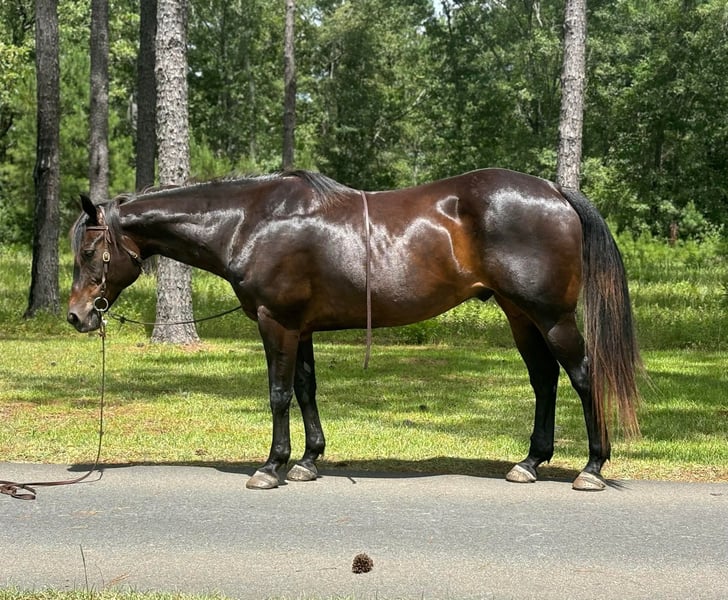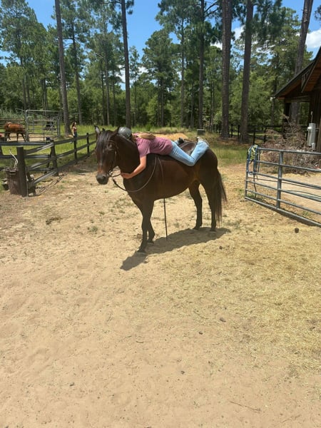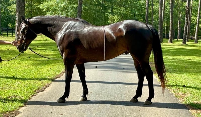 ONLINE AUCTION Place your bids at www.PlatinumEquineAuction.com Starting Bid $3500 Auction ends July 7th, 2024 Need a new saddle? Check out White Rock Saddles on our website or Facebook! Creek is a 10 yr old brown gelding that is one of the barn favorites at our ranch. Not only is he stunning to look at, he has the best puppy dog personality. Standing at 15.2 hands tall and a stocky body, he has plenty of size to carry anyone. He is the first one to meet you at the gate ready for lots of love and attention. Creek has been used at our ranch for all kinds of fun adventures. He is great on trails and never spooky or silly. Rides bareback, English, and western. He has a beautiful headset and stays very collected when riding as well as a very nice stop. Great for any level rider. He loads and unloads in the trailer with ease, stands great for the farrier and loves his bathes. If you’re truly looking for one of those all around safe family type horses, Creek is definitely one to consider adding to the family. He is up to date on coggins. Please contact Cadillac Ranch Heather 229-869-6338 for any questions or to set up a time to try Creek. Located in Dawson, Georgia. ONLINE AUCTION Place your bids at www.PlatinumEquineAuction.com Starting Bid $3500 Auction ends July 7th, 2024 Need a new saddle? Check out White Rock Saddles on our website or Facebook!