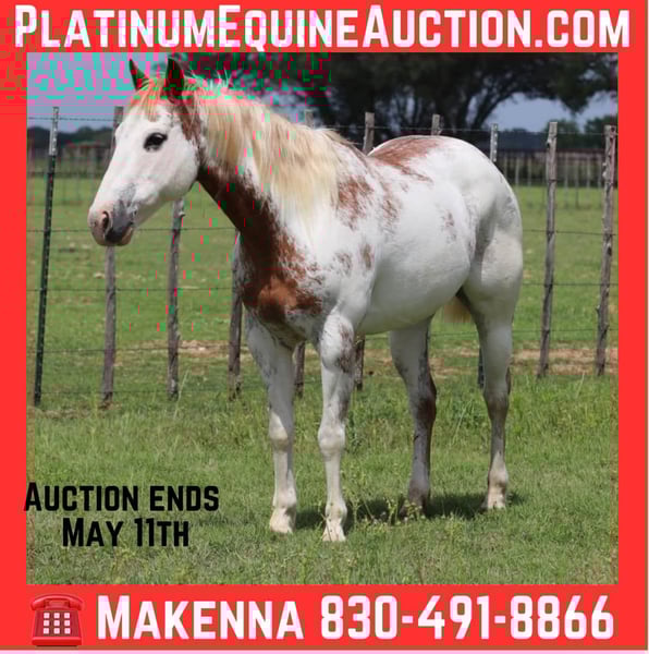 ONLINE AUCTION Place your bids at www.PlatinumEquineAuction.com Starting Bid $3500 Auction ends May 11th, 2025 Need a new saddle? Check out White Rock Saddles on our website or Facebook! Lil Annie is a 12 year old, grade mare, she is standing around 14-14.1 hands. Annie is as pretty as she is kind, she’s gentle and rides around with ease. Shes got a kind eye and a sweet in your pocket personality. Not mareish. Toted kids around the yard, even rides bareback in a halter. Walks, trots, lopes. Great trail horse and has been used mostly for that. Goes over and under anything you point her towards, she’s awesome down the road or in the thick of nature, she’s always an enjoyable, honest ride. Great with dogs, loves a good bath and pampering. This mare is quiet with good manners, loads, & unloads in anything. Ground ties, stands tied fine, and good for the farrier. She has good feet. This little mare is ready to go to her next home. Sound, and healthy. Located in Lipan Tx. Can help with shipping. text or call Makenna Cozby 830-491-8866 with any questions. ONLINE AUCTION Place your bids at www.PlatinumEquineAuction.com Starting Bid $3500 Auction ends May 11th, 2025 Need a new saddle? Check out White Rock Saddles on our website or Facebook!