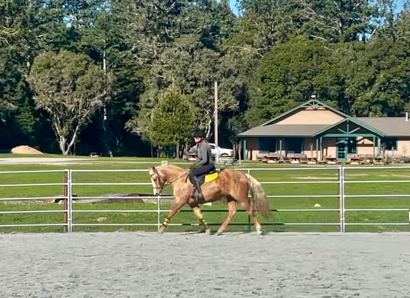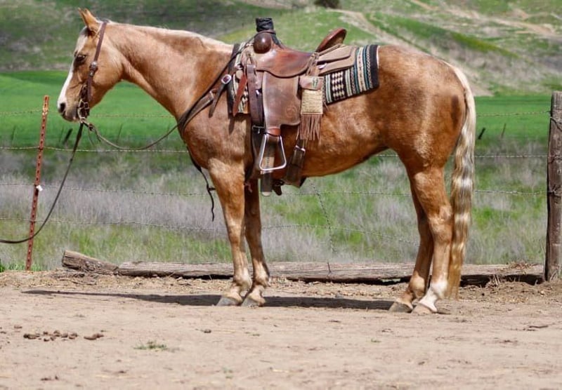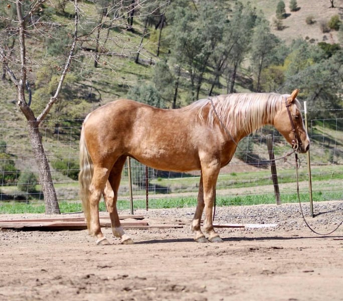 ONLINE AUCTION Place your bids at www.PlatinumEquineAuction.com Starting Bid $3500 Auction ends April 13th, 2025 Need a new saddle? Check out White Rock Saddles on our website or Facebook! Bam Bam is an exceptional little mare. Her attitude, and handle do completely match her flawless look. Bam is 12 years old and the stoutest built 14.1HH you’ve ever seen. Even tho she is grade she is sired by a buckskin AQHA “MR HOLLYWOOD ROOSTER”. This is the most easy going little horse you can find. She is absolutely safe for any and everyone. She has been used as a ranch, lesson, English and trail horse and she is very adaptive to every scene. She is a fancy, fluid mover and catches eyes everywhere she goes! Beginners get along with her more “whoa than go” attitude, then advanced riders enjoy her poise and fancy performance handle. Bam Bam is used to long trail rides in all types of terrain, all the farm animals, and crowded roads. She doesn’t spook, or get nervous ever. She is always calm, cool and collected. She is the prettiest little English pony and knows all the basic maneuvers. She’s happy to go anywhere she’s pointed out on the trail, and is just as happy in the arena. Bam Bam has a nice low headset, W-T-L both directions effortlessly, has a great collected stop and reverse. She is easy to one hand direct rein, and respects leg pressure easily. Bam Bam clip, ties, loads and bathes, flat footed and quietly. She is great with her feet and has excellent ground manners. She is safe to have around your entire family from toddlers, to mother in laws. We are sure you’ll love Bam as much as we do, no matter the environment! She is located in Bitterwater, CA. For more info, contact Cheyenne at 831-537-8746. ONLINE AUCTION Place your bids at www.PlatinumEquineAuction.com Starting Bid $3500 Auction ends April 13th, 2025 Need a new saddle? Check out White Rock Saddles on our website or Facebook!