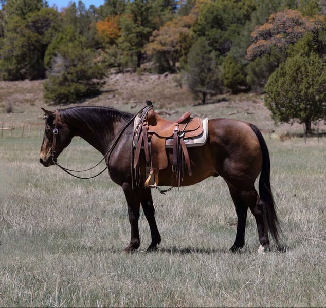 ONLINE AUCTION Place your bids at www.PlatinumEquineAuction.com Starting Bid $3500 Auction ends May 25th, 2025 Need a new saddle? Check out White Rock Saddles on our website or Facebook! Bonzai is a grade 12 year old gelding standing 14.2hh. If you’re looking for a sure enough gentle, in your pocket, gentle and safe gelding then look no further, Bonzai is the gelding for you!! We’ve explored countless miles of trails all over the rough country of Arizona and Bonzai has taken great care of his riders every single time. Leave him sitting for a month, saddle up and step right on Bonzai will stay gentle and ready to adventure! Fallen logs, flowing water, thick brush, rocky terrain, steep slippery slopes, you name it Bonzai will be surefooted as can be through it all. Bonzai is not only super fun to ride outside, he’s just as fun in the arena! He will walk, trot, and lope both ways easily picking up both his leads. Bonzai enjoys attention, and is very in your pocket, always wanting to be your buddy!! Bonzai is easy to catch, and good to groom, saddle, bridle, bathe, shoe, and load. Will come with a clean coggins and health!! Transport can easily be arranged anywhere in the US!! Located in Camp Verde, AZ. Call D/C Equine Services Dallas 804-822-2233 with any questions. ONLINE AUCTION Place your bids at www.PlatinumEquineAuction.com Starting Bid $3500 Auction ends May 25th, 2025 Need a new saddle? Check out White Rock Saddles on our website or Facebook!