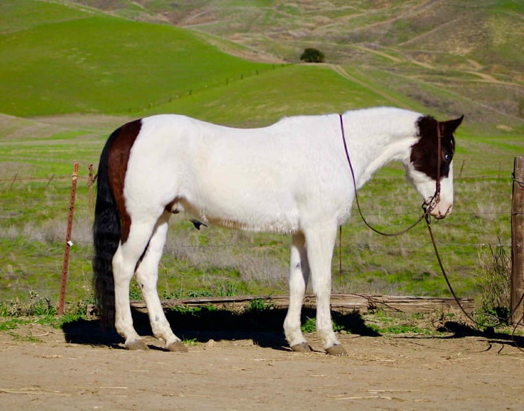 ONLINE AUCTION Place your bids at www.PlatinumEquineAuction.com Starting Bid $3500 Auction ends December 28th, 2025 Need a new saddle? Check out White Rock Saddles on our website or Facebook Blueboy is a handsome 12-year-old, 14.2hh paint gelding with two striking blue eyes and an easygoing, willing personality. He is a joy to be around and very simple to handle, making him a pleasant and reliable partner for a variety of riders. Blueboy has extensive experience on trails, roads, and in the arena. He excels on the trail and genuinely enjoys going on adventures. He travels confidently through steep, narrow terrain and moves with surefooted ease. He will lead the group without hesitation, ride calmly and consistently in the back, or go out alone with no issues. He is not buddy or barn sour and remains steady regardless of the situation. He also loves the water and will cross anything placed in front of him. Under saddle, Blueboy has a natural low headset and is very easy to direct. He neck reins, responds well to leg cues, has a dependable stop, and catches both leads easily in the arena. He is soft, responsive, and comfortable to ride. Blueboy is also good with time off and does not get fresh when brought back into work. He loads and hauls well and gets along nicely with other horses. With his temperament, trail experience, and solid training, Blueboy would make an excellent horse for trail competitions or for anyone looking for a trustworthy, enjoyable partner both in and out of the arena. He is located in Bitterwater, CA. for more info contact Cheyenne at 831-537-8746. ONLINE AUCTION Place your bids at www.PlatinumEquineAuction.com Starting Bid $3500 Auction ends December 28th, 2025 Need a new saddle? Check out White Rock Saddles on our website or Facebook