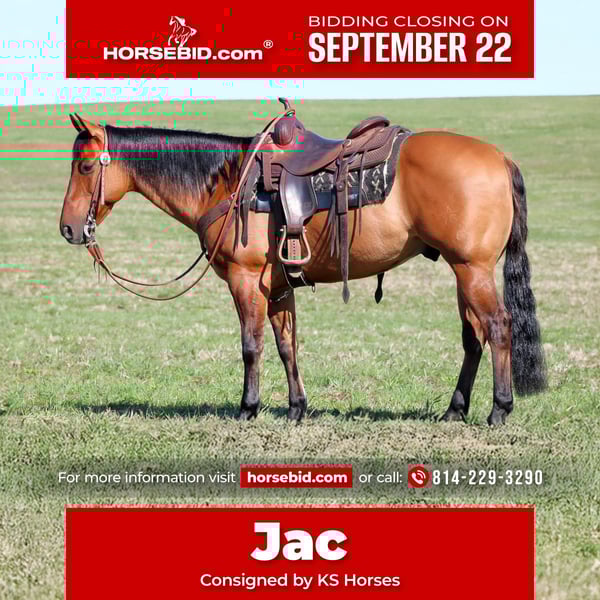 🍁𝒕𝒉𝒆 𝐅𝐀𝐋𝐋 𝑺𝒑𝒆𝒄𝒕𝒂𝒄𝒖𝒍𝒂𝒓🍁 Happening now thru MONDAY | SEPTEMBER 22nd - Available EXCLUSIVELY on HorseBid's website! For more details and to register visit: www.Horsebid.com CONSIGNOR CONTACT: KS Horses 814-229-3290 LOCATION: Clarion, PA BREED: QH REGISTERED: Yes REGISTERED NAME: Tinsel Oak Chiclets COLOR: Buckskin Dun HEIGHT: 14.3 AGE: 12 GENDER: Gelding Jac is Both Handsome and Super Good Broke to Ride! Hès 14.3 hands tall and well made and built to carry any size rider. Tinsel is a Finished Reiner, but anyone can ride even total beginners he is super safe and gentle. A experience rider will apricate his resume and his training. Jac is a great rope horse and ropes both ends. Hès great outside on the trails and goes anywhere on the trail you ask him to go without hesitation. Great Trail Horse That The Whole Family Can Ride. jack is a beautiful , fancy broke gelding that has all the bells and whistles but still rides quiet and gentle for any type of rider. You'll recognize some of the legends on both sides of his pedigree. Grandson of The Famous Smart Chic Olena and Holly Tinseltown and Dolls Union Jac. Great ground manners and loves attention. Stands good for the vet and farrier and easy to bath . Jac is super broke to ride and has lots of training but is so user friendly and easy to ride that he will make a city slicker look like Rip off Yellowstone! If you want a beginner reining horse to show, rope horse, ranch horse or family trail horse Jac is the Jack of All Trades! My favorite thing about him is how Quiet and Safe he is each and every time you ride him. Seasoned, Safe , Well Trained Horses like Jac are very hard to find . Don't Miss Out on this Great Opportunity to Own Such a Awesome Horse. Call or Text Kris at 814-229-3290. We can help arrange delivery anywhere in the United States. Thank You and God Bless