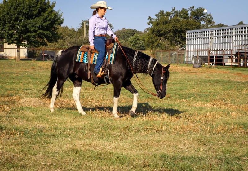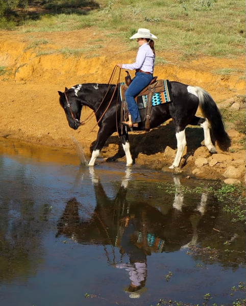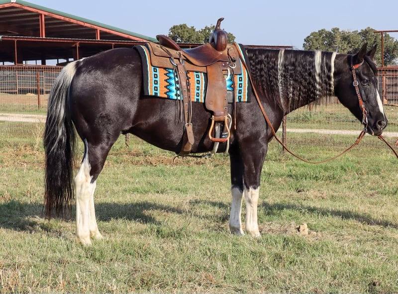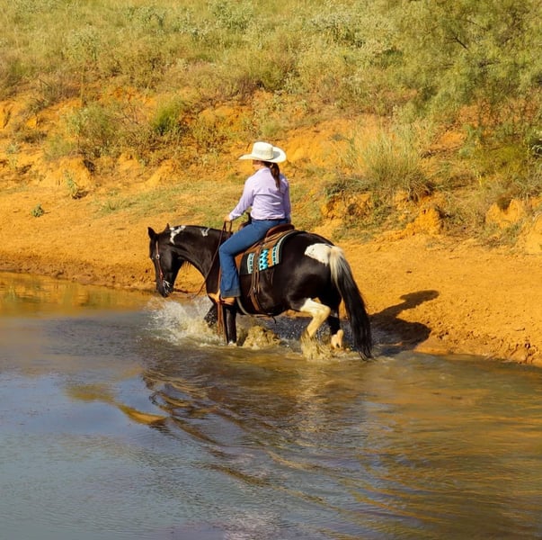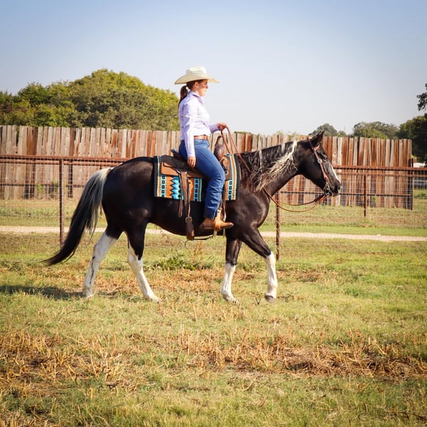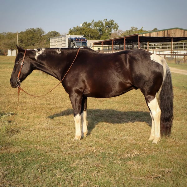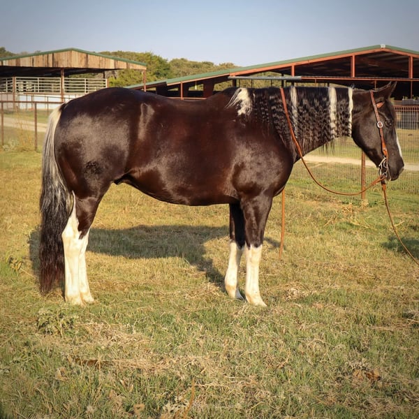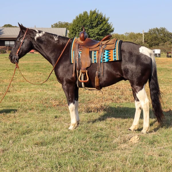 ONLINE AUCTION Place your bids at www.PlatinumEquineAuction.com Starting Bid $3500 Auction ends October 27th, 2024 Need a new saddle? Check out White Rock Saddles on our website or Facebook! Bentley is the epitome of the luxury horse! He is a GORGEOUS 11 year old black and white tobiano paint gelding, stands 15.3 HH, and has all the style you’ve ever dreamed of. Plus, he is the perfect gentleman! Bentley is the horse everyone in the family will love, as he loves to be loved on by every one. There is not a mean bone in this geldings body! Bentley excels both in and out of the arena, is amazing out on the trails alone, and will follow along in a group as well. He’s a tough contender in the open show or 4-H show world, as he’s oh so smooth and incredibly steady. He’s the first one to the gate to greet you and is very easy to catch. Bentley has some of the best ground manners we’ve seen in a gelding and he’ll respect your personal space, but will always stay beside you, with or without the halter. Bentley ties and stands tied all day, he’s easy and SAFE to clip, bathe and shoe. He loads with you or on his own, he’s easy to saddle & bridle, and he is very patient with any level of rider. He responds to verbal cues, leg cues or hand cues and is truly suitable for every one in the family. We invite you to come meet Bentley in person before sale day. We hope you love Bentley, as much as we do! Contact Milou Rupert 403-506-5232 Located in Keene, TX. ONLINE AUCTION Place your bids at www.PlatinumEquineAuction.com Starting Bid $3500 Auction ends October 27th, 2024 Need a new saddle? Check out White Rock Saddles on our website or Facebook!