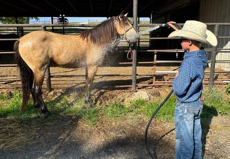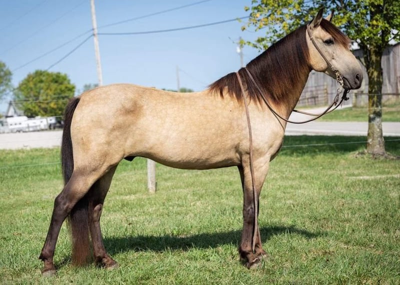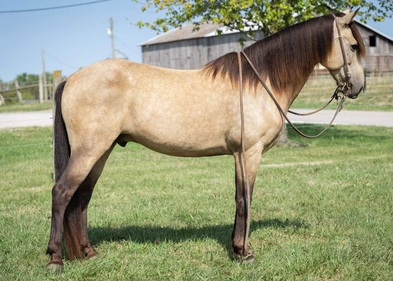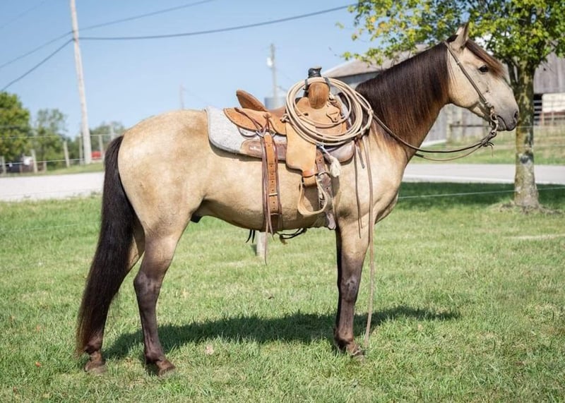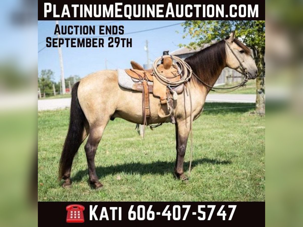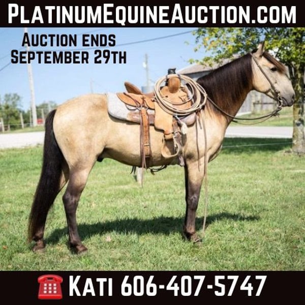 ONLINE AUCTION Place your bids at www.PlatinumEquineAuction.com Starting Bid $3500 Auction ends September 29th, 2024 Need a new saddle? Check out White Rock Saddles on our website or Facebook! Every parent dreams of their kid’s horse to match daddy’s big buttermilk buckskin, right? We’d like to introduce Stoney. He stands 14 Hands and is 12 years old. He is a stunning buckskin gelding with a long mane and tail. We get compliments on him everywhere we go. He is sound, no weave/crib or loading issues. Stoney has been trail ridden all throughout our farms in KY checking fences, gathering pairs, moving young bulls to different pastures and various other jobs. He also rides well in an arena setting. He has that “rocking chair” canter that everyone wants and a smooth trot. We feel that he would be a great step up for a kid or perfect for an adult that is looking for that shorter, reliable trail mount. Stoney is healthy and an easy keeper. He pastures well with other horses and cattle. Stoney is no stranger to our family and has been connected to us the past couple years but is ready for his next person. Please schedule an appt to come meet/ride him. Text or call if anyone has any questions. Located in Maysville, KY. Call Kati Ream 606-407-5747. ONLINE AUCTION Place your bids at www.PlatinumEquineAuction.com Starting Bid $3500 Auction ends September 29th, 2024 Need a new saddle? Check out White Rock Saddles on our website or Facebook!