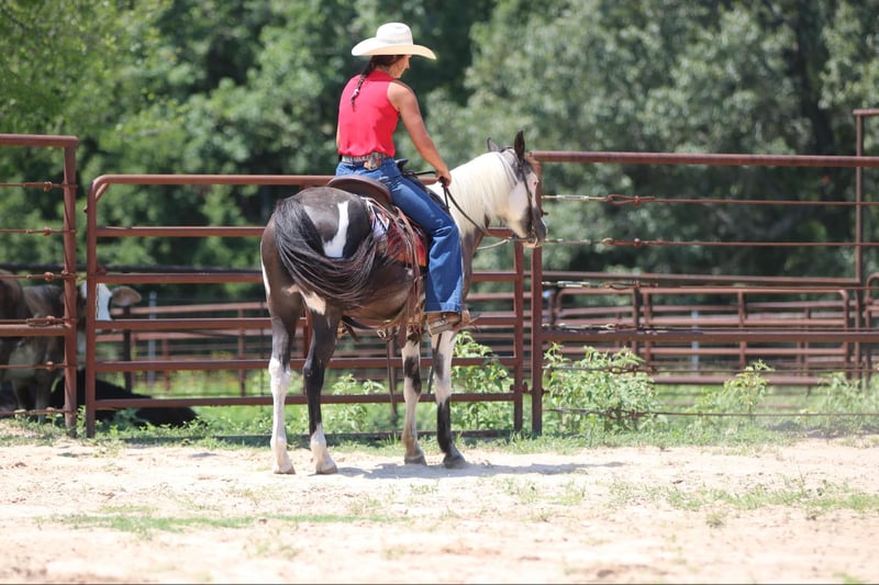 ONLINE AUCTION Place your bids at www.PlatinumEquineAuction.com Starting Bid $3500 Auction ends August 25th, 2024 Need a new saddle? Check out White Rock Saddles on our website or Facebook! Cosmo is one of the neatest colored black and white, 12-year-old, 14 hand pinto gelding. I have ever had in my barn. He is extremely sweet and gentle and has had littles and beginners climb all over him. His ground manners are fantastic, and he is excellent about his feet, even for a small child. He has been used quite a bit in lead line and walk/trot lessons. He has not been cantered a lot and will be much more woah than go. A kid will have a tough time getting him to break out of a trot if they are not carrying a crop but once he is cantering, he is very gentle and easy to handle. He has many trail miles and will go through water, ditches, and over bridges. This sweet gelding is ready to be your new best friend. Athens Tx. Adrieen Staudinger 479-685-5020. ONLINE AUCTION Place your bids at www.PlatinumEquineAuction.com Starting Bid $3500 Auction ends August 25th, 2024 Need a new saddle? Check out White Rock Saddles on our website or Facebook!