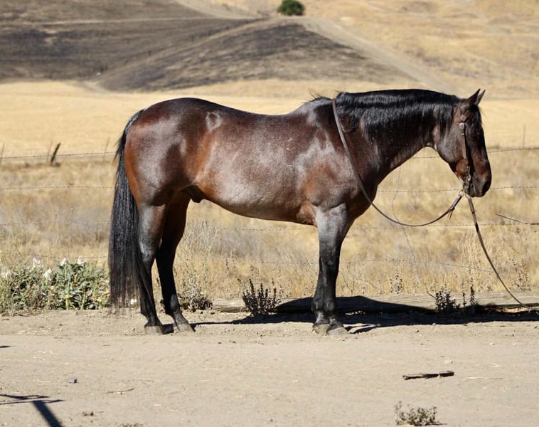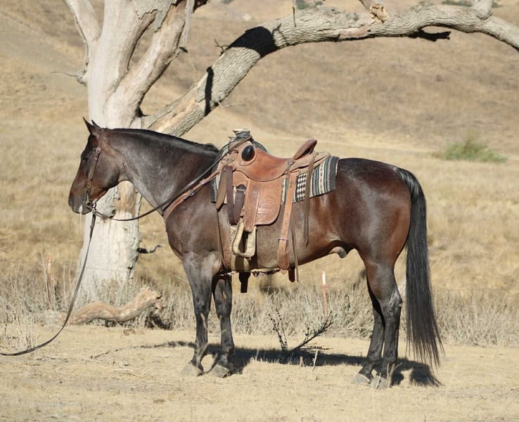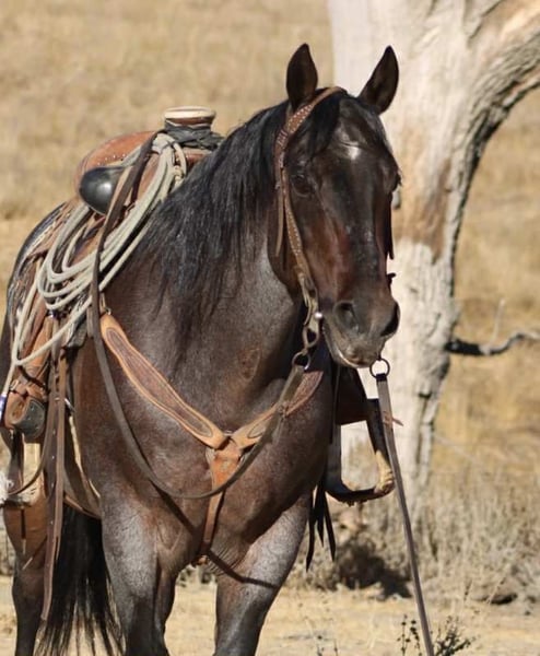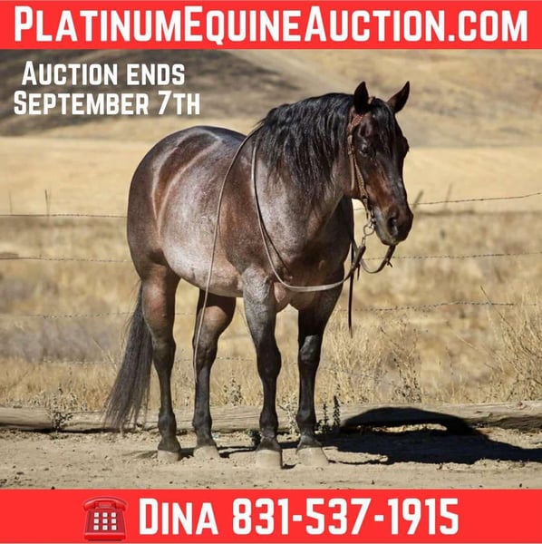 ONLINE AUCTION Place your bids at www.PlatinumEquineAuction.com Starting Bid $3500 Auction ends September 7th, 2025 Need a new saddle? Check out White Rock Saddles on our website or Facebook Buddy is a Beautiful blue/bay roan Saint! If you’ve been searching for a horse that’s as close to bombproof as they come, meet Buddy—the kind of gelding you can trust with absolutely anyone in the saddle. At 13 years old and 14.3 hands (tall and wide), this beautiful roan saint is steady, safe, and unflappable in every situation; from tarps, flags, bridges, pool noodles, bouncy balls, traffic, bicycles, barking dogs, or noisy town commotion—nothing rattles his quiet, gentle mind. Buddy is the horse you climb on when you want zero surprises and total peace of mind, the one that makes every rider—from green to seasoned—feel like they belong in the saddle. He lopes off soft, stays collected, neck reins, and carries himself at that perfect, easy pace that makes every ride comfortable. On the ground he’s just as reliable—tying, hauling, clipping, bathing, and standing for the farrier without a single fuss. He’s the same horse every day, alone or in a group, in a stall or pasture, always kind and mannerly, always safe and forgiving. And when the work calls, Buddy is no stranger to earning his keep—he’s gathered cattle, checked fences, roped, and stood solid in the herd with that same calm, willing try he gives in everything he does. Buddy isn’t just another gelding—he’s the kind of partner that turns ordinary days into the rides you’ll measure all the others by. Located in Paicines, CA. If you have any questions call Dina with Longhorn Ranch 831-537-1915. ONLINE AUCTION Place your bids at www.PlatinumEquineAuction.com Starting Bid $3500 Auction ends September 7th, 2025 Need a new saddle? Check out White Rock Saddles on our website or Facebook