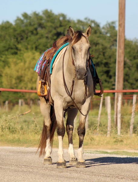 ONLINE AUCTION Place your bids at www.PlatinumEquineAuction.com Starting Bid $3500 Auction ends September 15th, 2024 Need a new saddle? Check out White Rock Saddles on our website or Facebook! Everyone meet “Rio” this guy has a heart of gold! Rio is a 12 year old buckskin paint gelding standing 15 hds tall . Rio will check all your boxes when looking for your next forever partner . He’s stout made , gorgeous color and is always ready to go out and get the job done . Rio has been used around the ranch to gather cows , check fences and load trucks on . He loves to hit the trails and will go all day long for you . He is a very confident guy and always willing to please. Rio goes wherever you point him , he’s been hauled on many over night camping trips to the national parks. He will go up and down hills , cross logs , bridges , and from the smallest creeks to the deepest water he will walk right in every time with zero hesitation. He is not bothered by campers and wildlife he handles it all with ease . Rio rides out in a group or alone , he will go wherever you place him in the group front , middle or the end . He will ride out down the busy hwy for you with heavy traffic including semi trucks flying by. In the arena he will walk , trot and lope circles always picking up the correct leads . He is very user friendly and always stays gentle taking care of his rider . Rio speaks for himself , he’s a super sweet gelding with a heart the size of Texas . Rio is the complete package that doesn’t disappoint. He is easy to catch , stands tied quietly , stands for the farrier , loads and unloads off the trailer like a perfect gentleman. He stands to be mounted, easy to saddle and bridle never giving you any issues. Contact us to come try him, or we can set up a FaceTime also. If you need help with transport don’t hesitate to ask we have a list of reputable haulers that can get him safely to your doorstep world wide. Located in Stephenville, TX. Contact M $ Performance Horses Michelle 661-817-9120 with any questions. ONLINE AUCTION Place your bids at www.PlatinumEquineAuction.com Starting Bid $3500 Auction ends September 15th, 2024 Need a new saddle? Check out White Rock Saddles on our website or Facebook!
