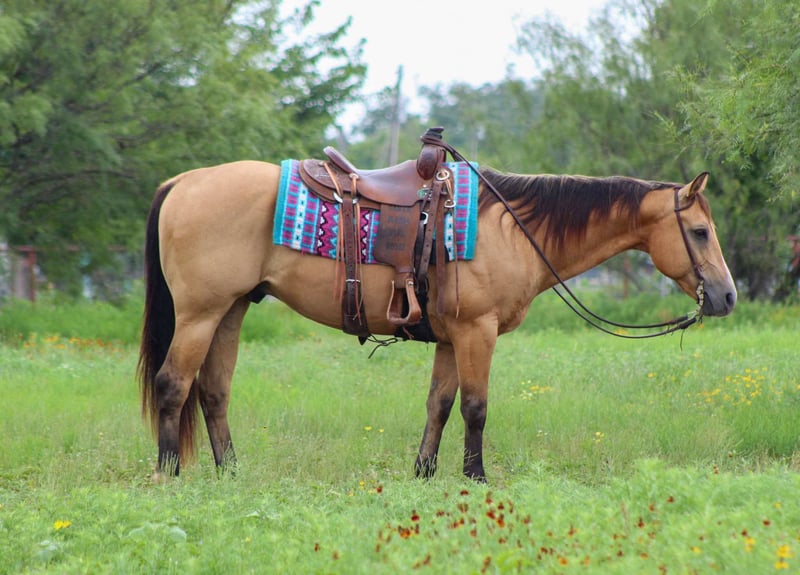 ONLINE AUCTION Place your bids at www.PlatinumEquineAuction.com Starting Bid $3500 Auction ends July 20th 2025 Need a new saddle? Check out White Rock Saddles on our website or Facebook Son Of Doc O Peppers, your next favorite equine partner! This stunning 2012 AQHA registered buckskin gelding stands at a solid 15 hands and is sure to turn heads wherever you go. He’s Americas favorite color and has a charming personality, DR Pepper is not just a pretty face—he’s an incredibly versatile ranch horse who knows the ropes! From roping and doctoring sick cattle to gathering and loading trucks, DR Pepper has done it all. He’s extremely well-trained and cowy making him a reliable partner in any ranching task. Plus, he’s been in the cutting pen, turning back cattle, and has plenty of experience at the sale barn, too. This fancy gelding is one-handed broke and rides beautifully in the bridle. He has smooth transitions, whether you’re in the arena or out on the trails. With a pretty turnaround and a big stop, he’s all about those smooth moves! He can side pass to open and close gates and has confidently navigated ground poles, tarps, and bridges on the trail course. If you’re looking for a horse that excels in ranch riding events, DR Pepper has all the buttons you need to shine in the show pen. He rides out on trails like a champ, effortlessly crossing downed trees and tackling hills—just point him in the right direction, and he’s ready to go! Whether you prefer riding solo or with a group, he’s fine with either. With his impressive pedigree, including being a grandson of the legendary Doc O Lena, DR Pepper comes from a line of proven winners. While he’s ready to impress, I’d recommend him for an intermediate rider who can appreciate just how fancy broke he truly is with all his buttons. If you’re ready to add a talented and reliable partner to your team, look no further than Dr Pepper He’s waiting to help you tackle any job you throw his way. We are open to anyone interested in him to schedule a time to come see him or if you can’t make it schedule a FaceTime showing to see him. If you need help with transport don’t hesitate to ask we have a list of reputable haulers that can get him safely to your doorstep WORLD WIDE including, Alaska , Mexico, Hawaii, Canada and anywhere in between from Stephenville, TX. Contact M$ Performance Horses Michelle 661-817-9120. ONLINE AUCTION Place your bids at www.PlatinumEquineAuction.com Starting Bid $3500 Auction ends July 20th 2025 Need a new saddle? Check out White Rock Saddles on our website or Facebook