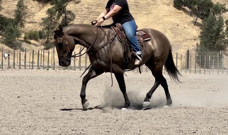 ONLINE AUCTION PLACE YOUR BIDS AT PLATINUMEQUINEAUCTION DOT COM $3500 STARTING BID AUCTION ENDS JUNE 30TH Sven is a 12 year old 15HH grulla gelding with all the shape and bone you could ask for! This handsome guy is a trail riders dream! He is laid back, willing and quiet. Sven is one of those campaigner trail gelding that will cruise at a relaxed speed no matter the scenario. He had more whoa than go and is user friendly for any level rider. Sven has smooth gaits and lopes nice pretty circles in the arena. Neck rein, move off leg pressure and has an amazing stop. Sven carries his head naturally low and out of the way. He has a sitable, smooth jog that anyone will admire. Out on the trail he will be the easiest horse to direct and will go in a group setting or out alone. He has no spook and has been hauled all over California from the mountains to the beaches for camping trips and day long trails! He is sure to be safe every time you pull him out, no matter how long he has sat. Sven is friendly, personable, and absolutely loves the attention from people. He will be the first horse to meet you at the gate to be caught and enjoy every moment with his person! People look long and hard to find a horse of this size, color and demeanor. Sven is located in Bitterwater, CA. For more info contact, Cheyenne Rey 831-537-8746
