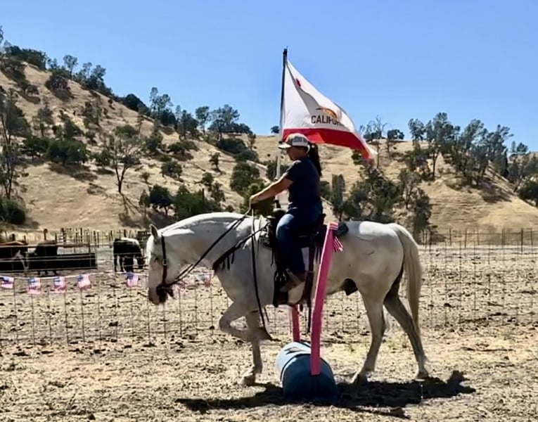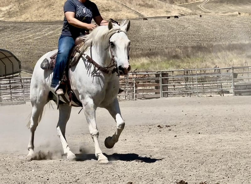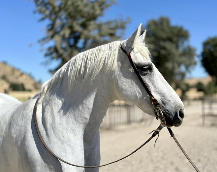 ONLINE AUCTION Place your bids at www.PlatinumEquineAuction.com Starting Bid $3500 Auction ends July 7th, 2024 Need a new saddle? Check out White Rock Saddles on our website or Facebook! Toad is a 12 year old grey and white paint cross gelding standing 15HH. This boy has the looks, brains and gentleness everyone hopes to find! Toad is a stout built boy, who is the easiest keeper. He is a friendly horse, always curious to know what you are doing. He adores attention and wants to be your best friend, you are sure to fall in love with his affectionate personality. Toad has a great mid-pace when riding out on the trails, he will coast along at any speed you desire. He’s easy to ride and never refuses. Neck rein or direct rein, he can do either. Will easily W-T-L in the arena and has a nice collected stop and reverse. We have hauled Toad to many different locations and he’s always be a complete gentleman. He has been rode over trail obstacles and through tricky terrain out in the country side. He is quiet, calm and responsive at all times. He is used to all farm animals, vehicles, and machinery. He can be left untouched for periods of time and return to riding the same horse. Toad will let you clip, bathe, and tack him up easily as he stands quiet, and patient. Toad truly is one of kind with his looks, and his personality! He is located in Bitterwater, CA. For more info contact Cheyenne Rey 831-537-8746. ONLINE AUCTION Place your bids at www.PlatinumEquineAuction.com Starting Bid $3500 Auction ends July 7th, 2024 Need a new saddle? Check out White Rock Saddles on our website or Facebook!