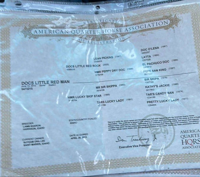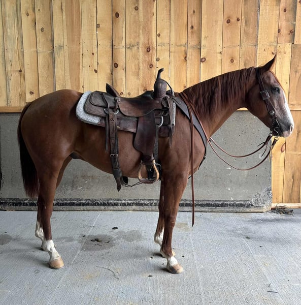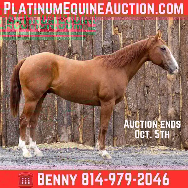 ONLINE AUCTION Place your bids at www.PlatinumEquineAuction.com Starting Bid $3500 Auction ends October 5th, 2025 Need a new saddle? Check out White Rock Saddles on our website or Facebook Docs Little Red Man is a 2012 AQHA gelding standing 15.1hh and in heavy bone. Red Man as we call him is a super nice all around gelding that comes with a long resume of using time from the ranch to the stock yards and every trail in between. Red Man is quiet and will neck rein, turn on haunches and move laterally, he has a nice steady back up and easy jog and lope. He prefers slower work but isn’t a lazy to a job. Red Man will go out and arena or trail ride alone with confidence or handles the loud and busy show arena just the same. He rides out over dead fall, through water and up or down any mountain you point him at. Red Man is good to lead the group on trail or will gladly take the back, he is respectful of other horses and doesn’t bite or kick even when they ride up close to him. He has been around farm equipment and all types of farm animals without a care. Red Man can be ridden on the hard road and is okay with passing cars and people on bikes etc. Red Man is good to tie, groom, bathe and saddle up. He loads easily and hauls to new places like a charm, he requires no prep just back him off, saddle up and get to work. If you want to hop on bareback and ride in a halter and lead around the yard one day and the next saddle up and ride out ten miles to bring back some cows this is your guy. Red Man sells sound with no previous medical history or known injuries. All prospective buyers are welcome to a pre purchase vet exam at their expense, if you need help arranging transportation we would be happy to share our list of haulers with you. For more info contact Benny Hall 814-979-2046. Located in Everett, PA. ONLINE AUCTION Place your bids at www.PlatinumEquineAuction.com Starting Bid $3500 Auction ends October 5th, 2025 Need a new saddle? Check out White Rock Saddles on our website or Facebook